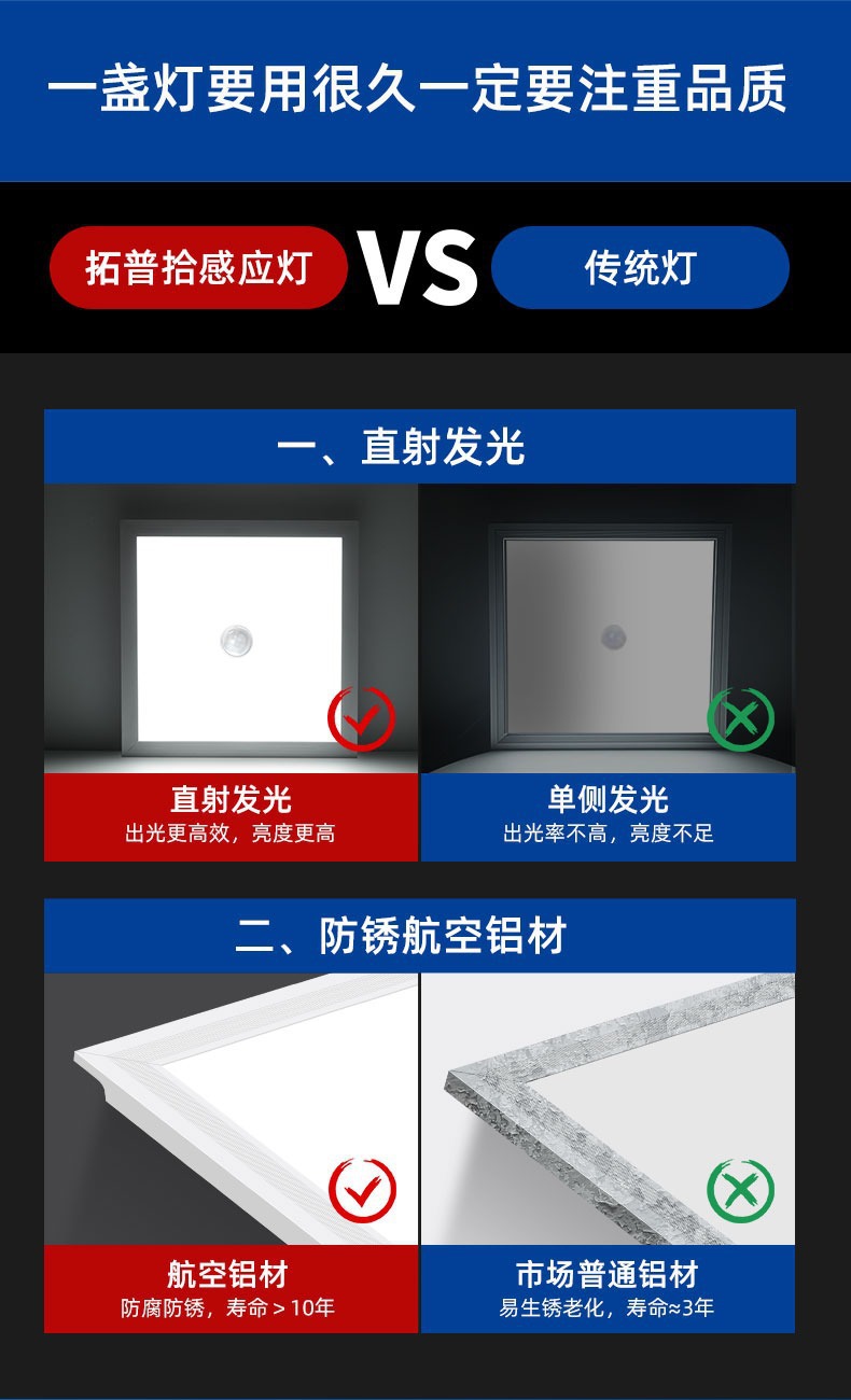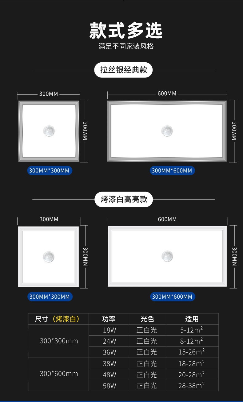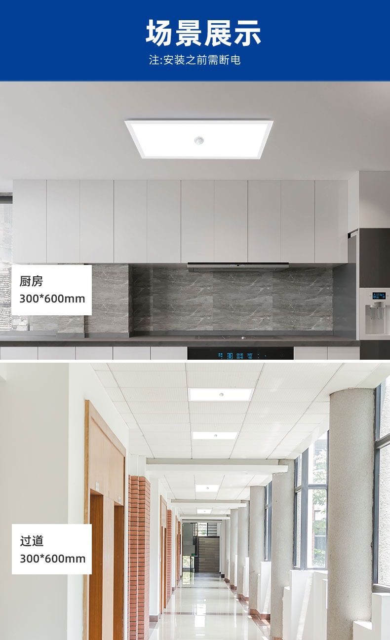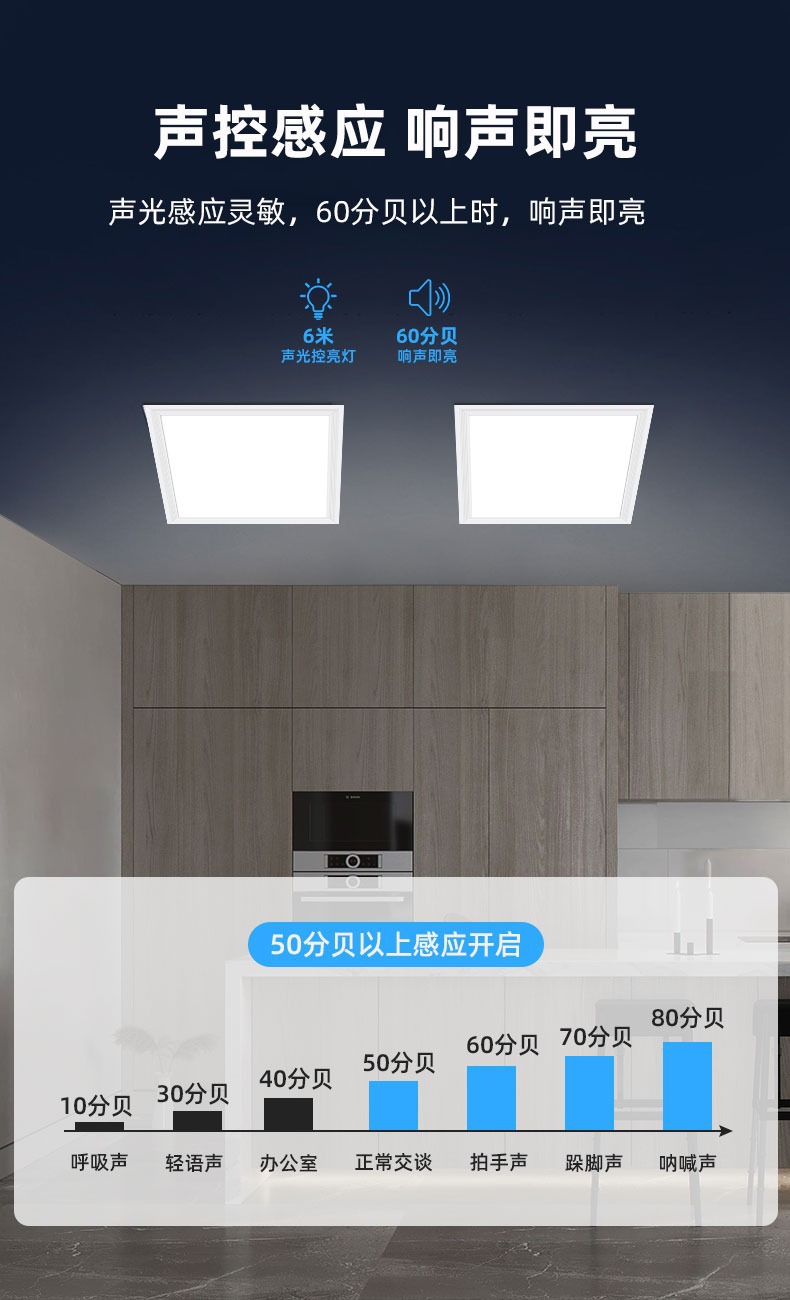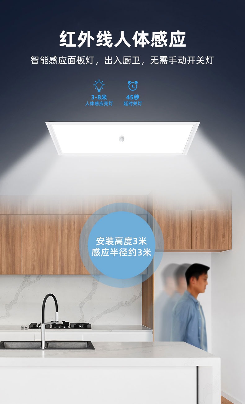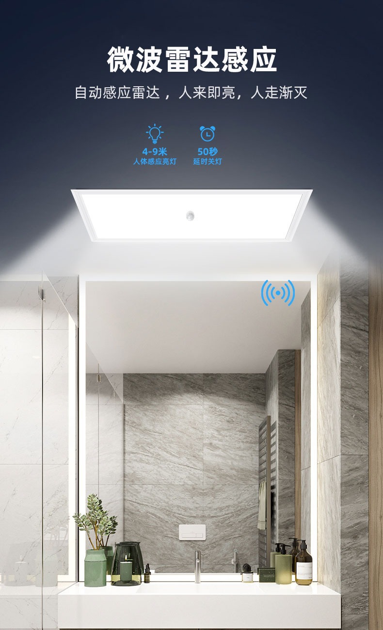 Lampu panel induksi radar led, cahaya langit-langit dapur kontrol suara 600*600, lampu panel kamar mandi langit-langit terintegrasi