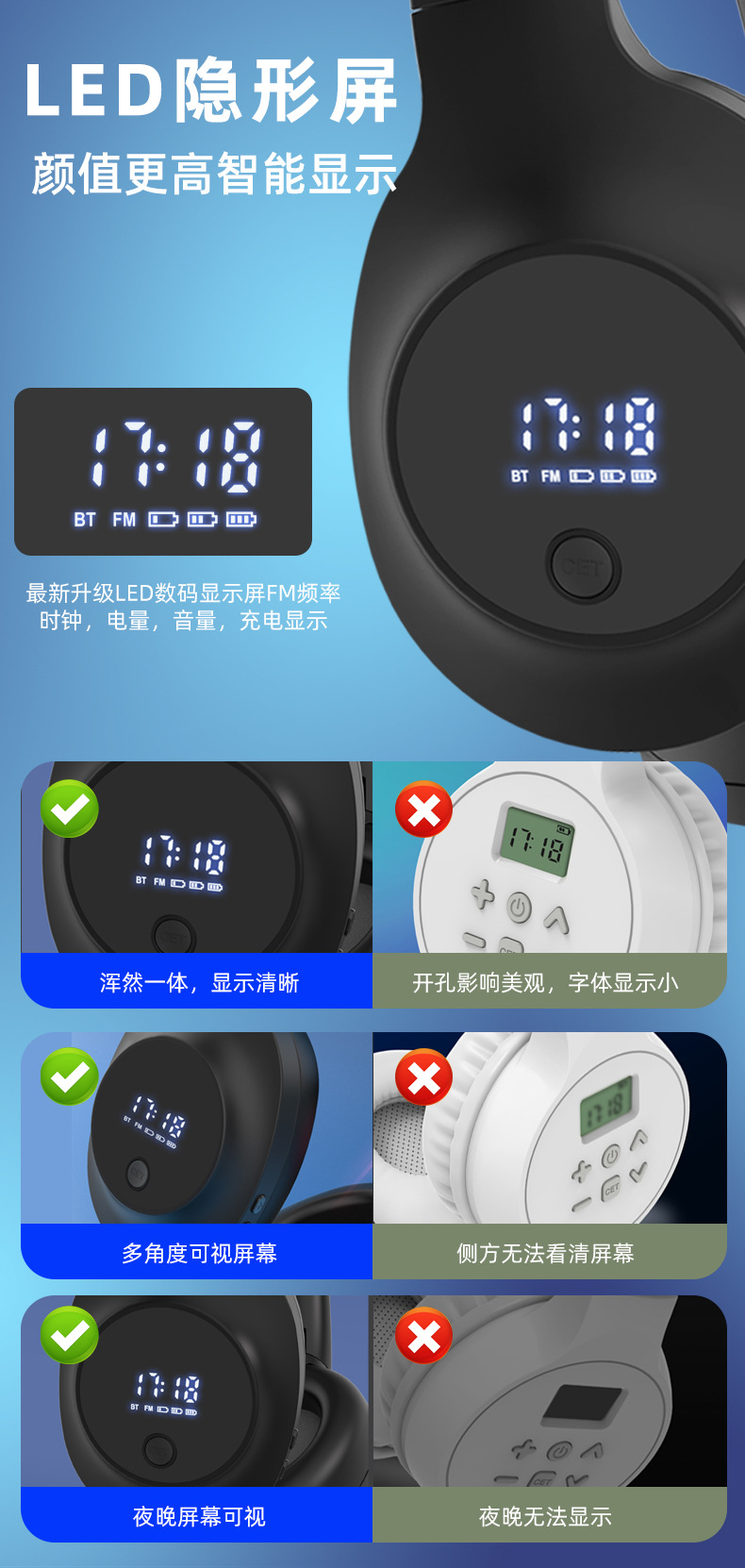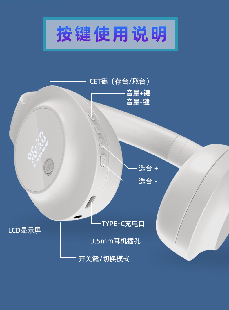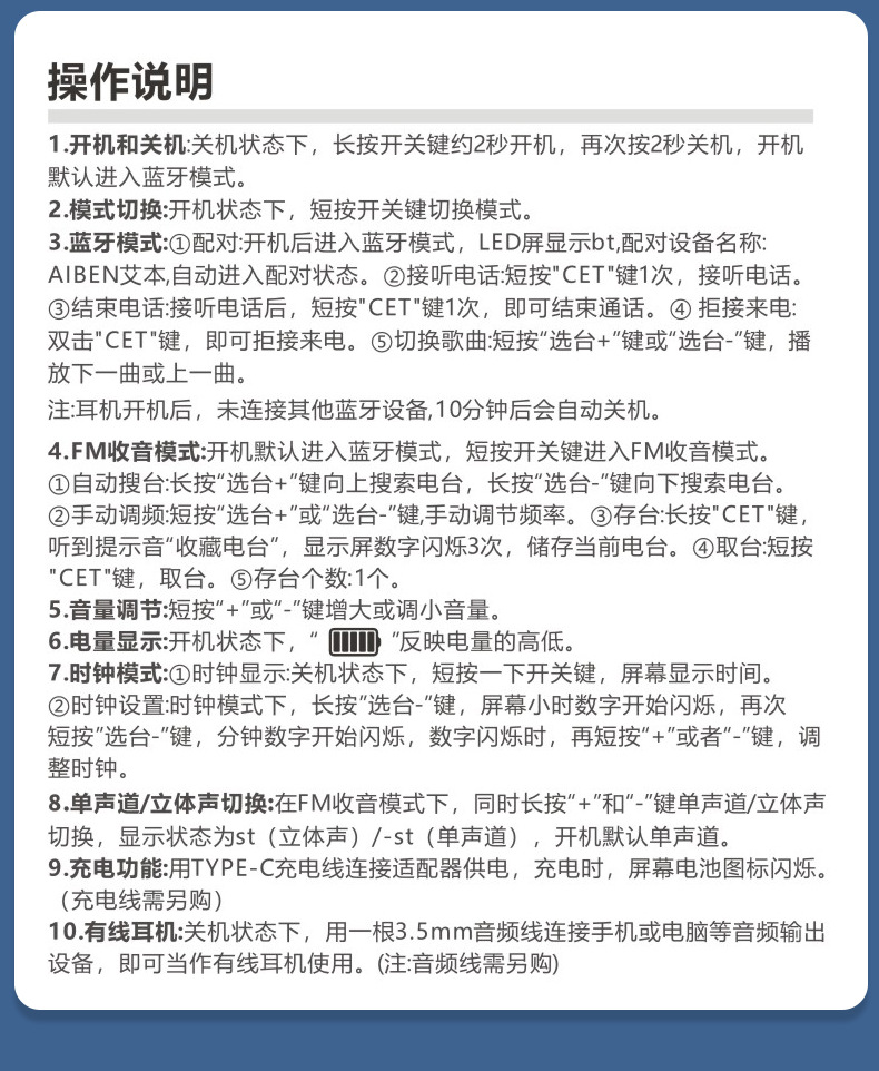 Grosir Bluetooth FM isi ulang empat atau enam tingkat headset mendengarkan 46 tingkat FM nirkabel tes AB-level