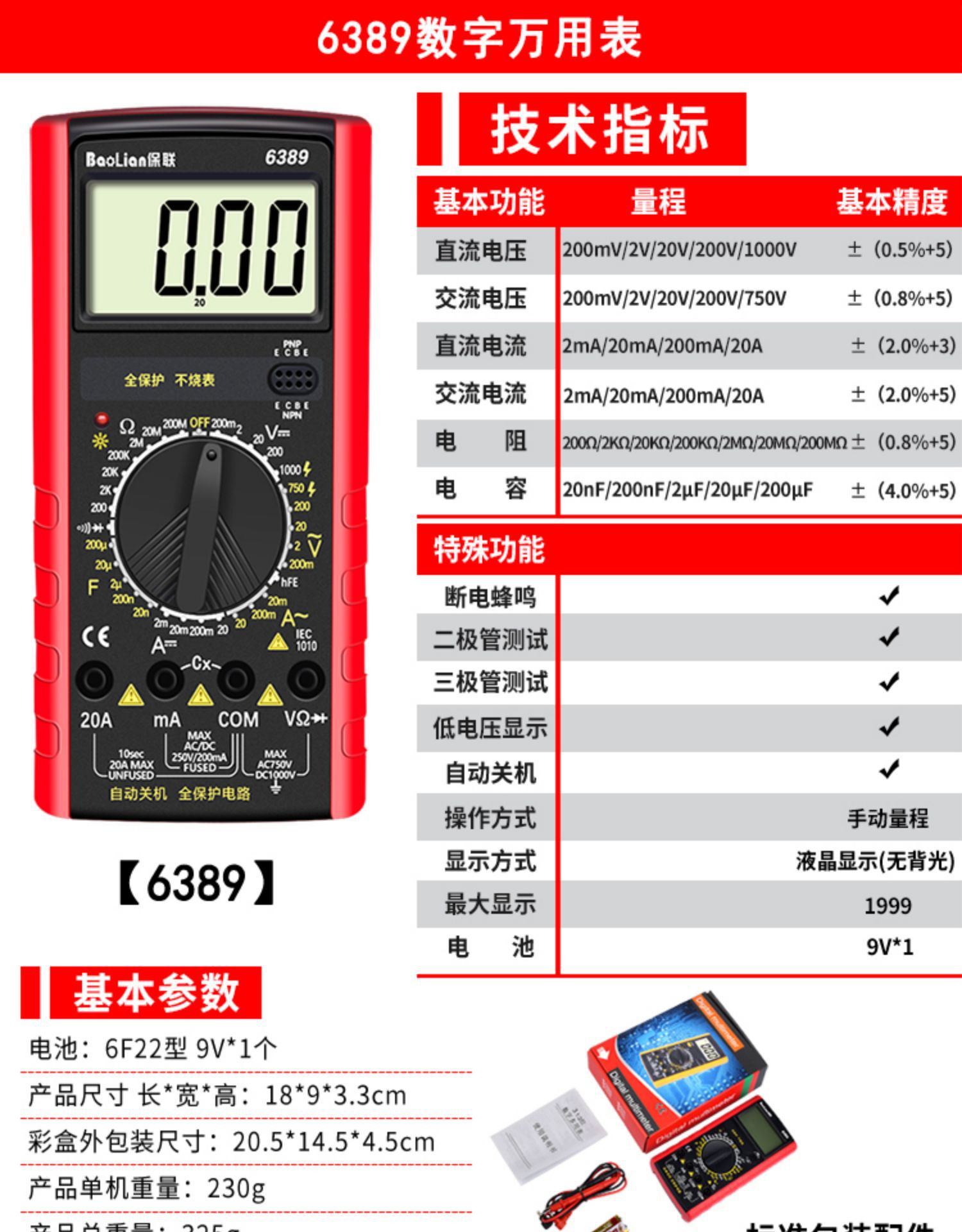 Multimeter digital presisi tinggi tampilan digital antibakar elektronik portabel kecil perlindungan uji pemeliharaan ahli listrik multifungsi