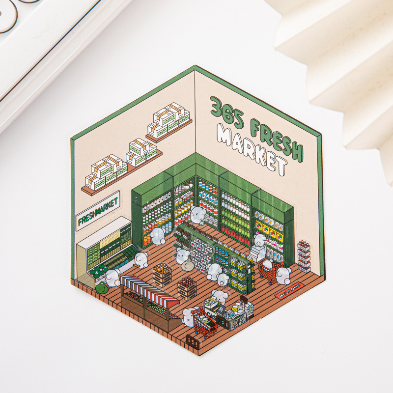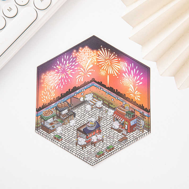 六边形小屋:300g白卡+单面覆亮膜