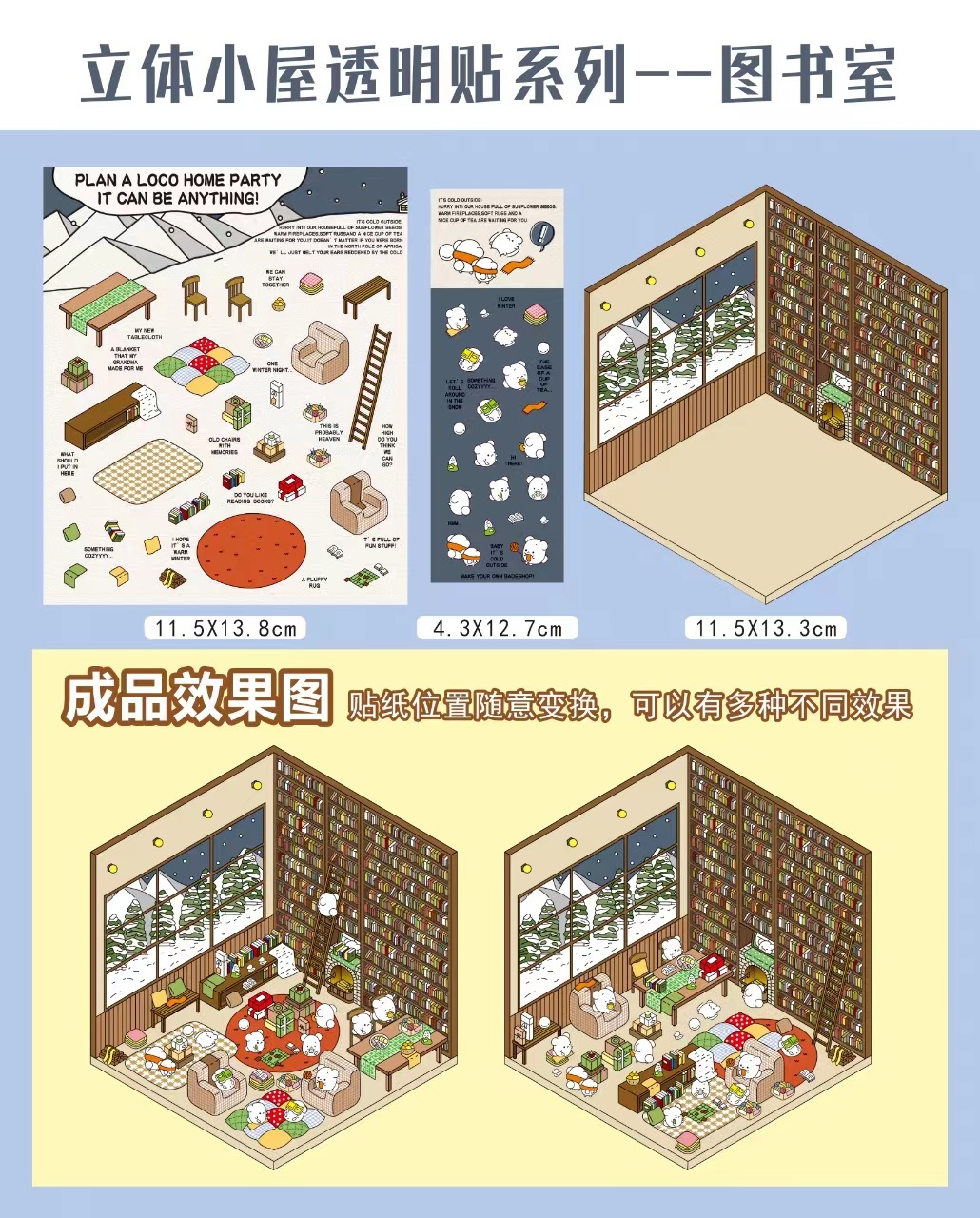 贴纸:PET双透不干胶2枚(1大1小)+单面覆哑膜