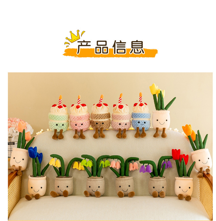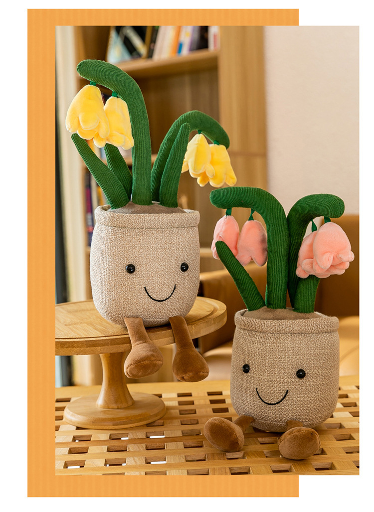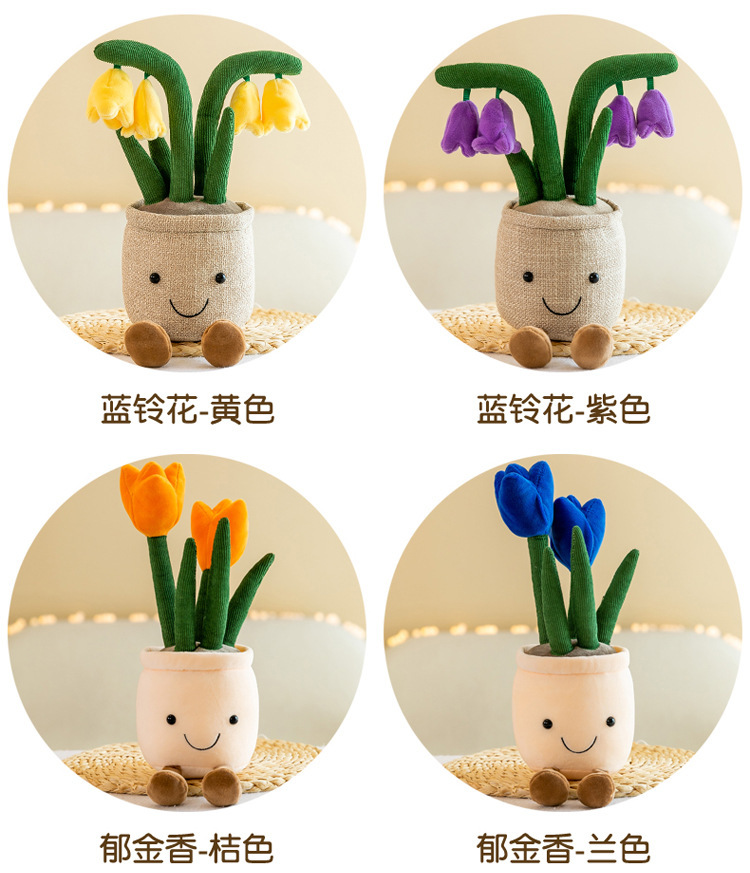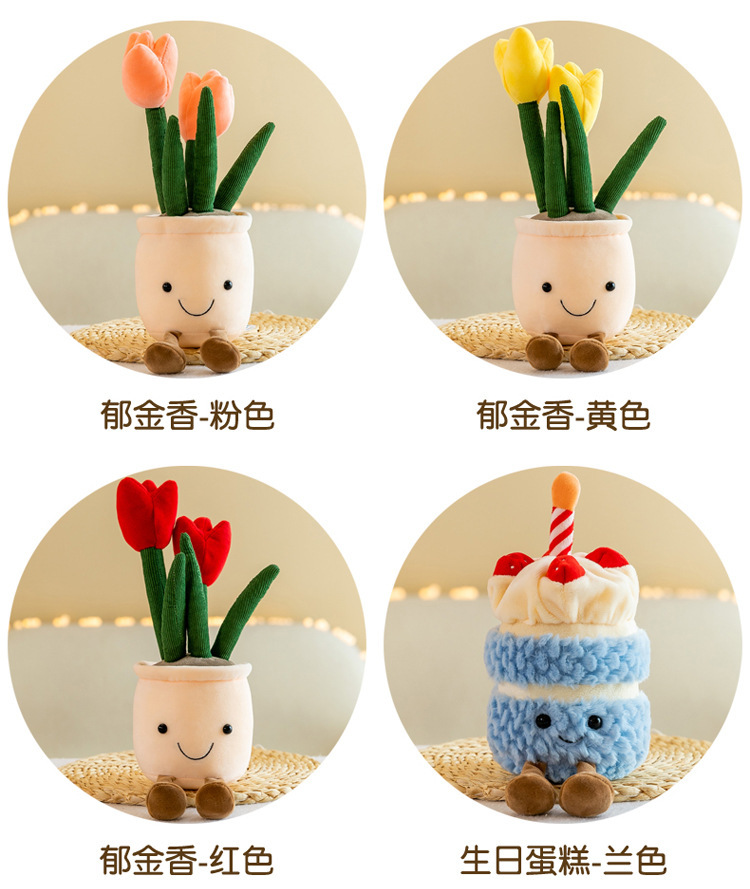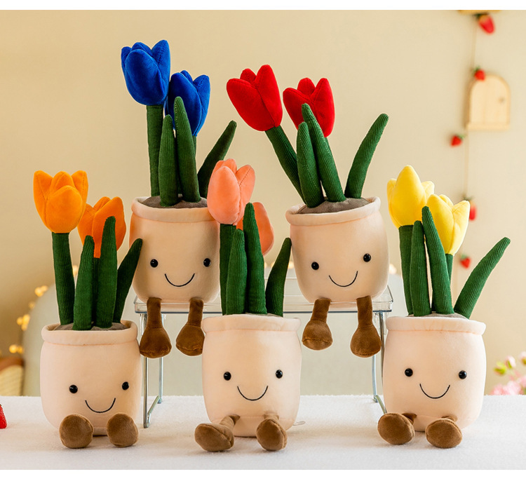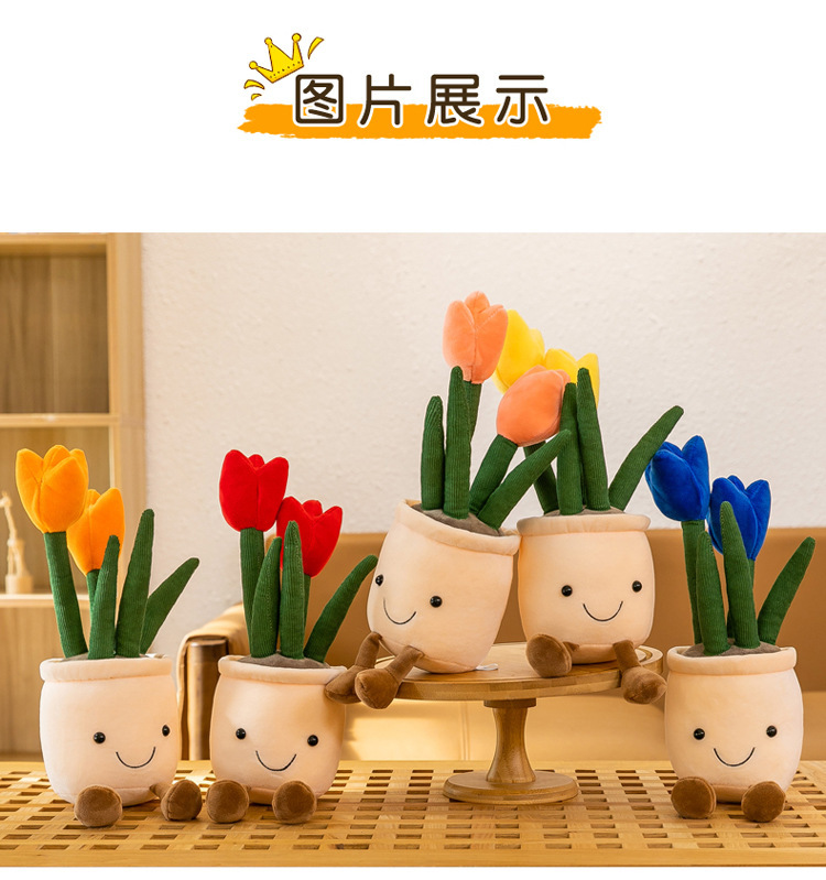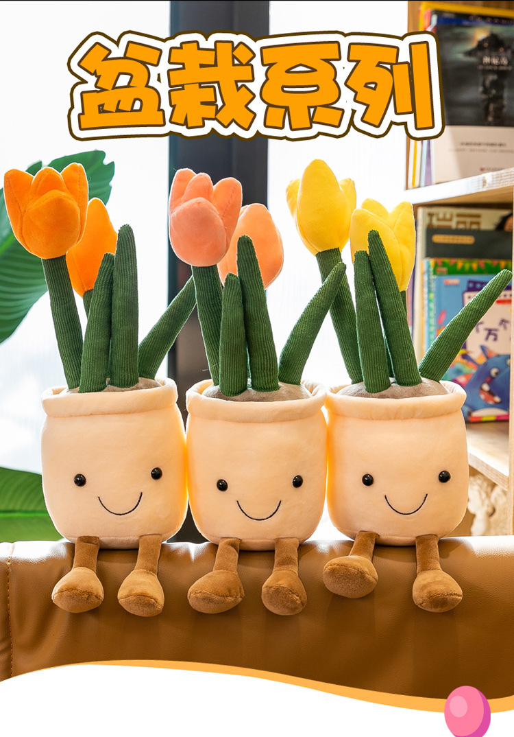 Tanaman buatan mainan mewah tulip kartun versi Q dekorasi tanaman hijau mesin pengambil lap boneka rumah lucu