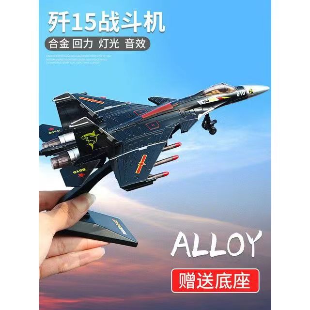 Model pesawat tempur J-15 dari bahan alloy, mainan anak-anak, model logam militer, pajangan meja, mainan tarik mundur.