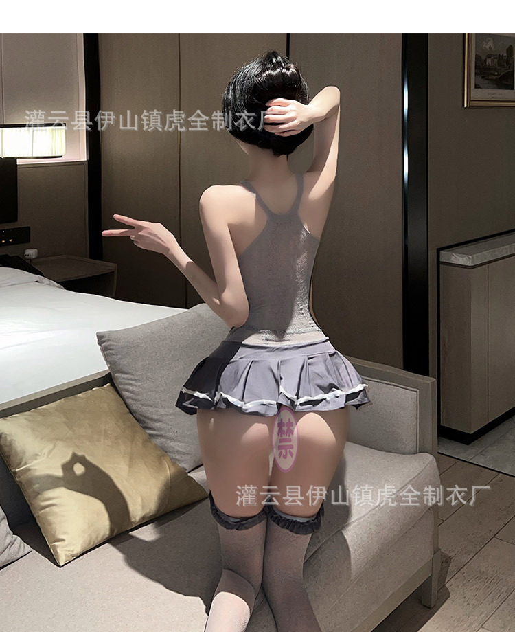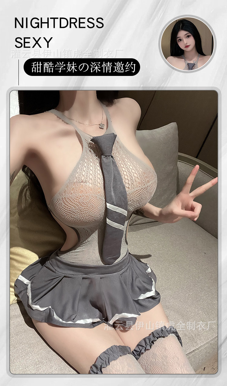 Lingerie seksi setelan anak perempuan JK seragam pelajar stoking menggoda gaun jala satu potong 9857 pengiriman satu potong