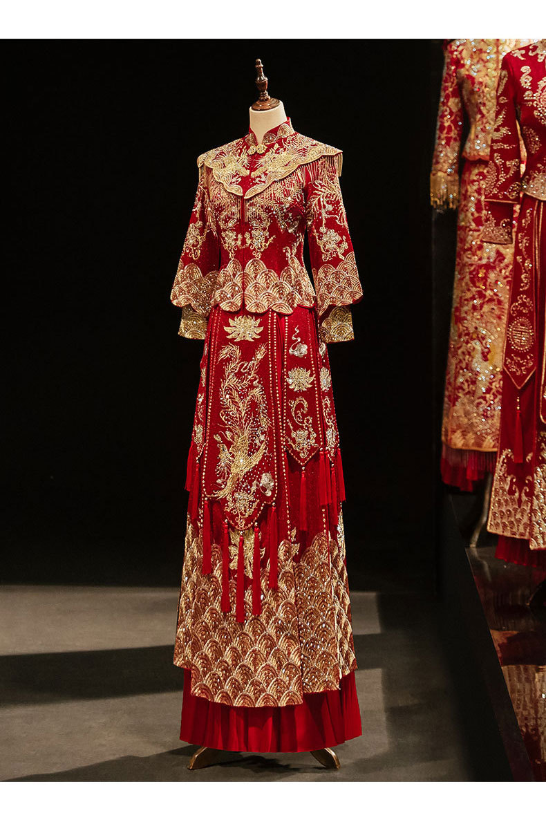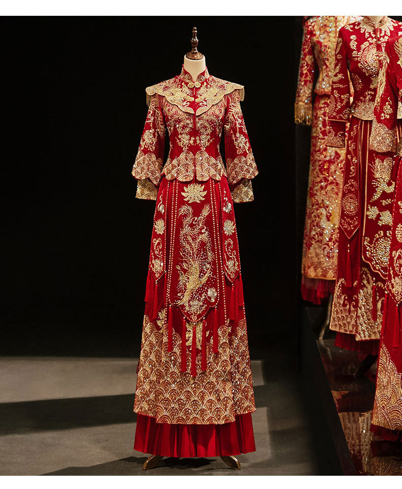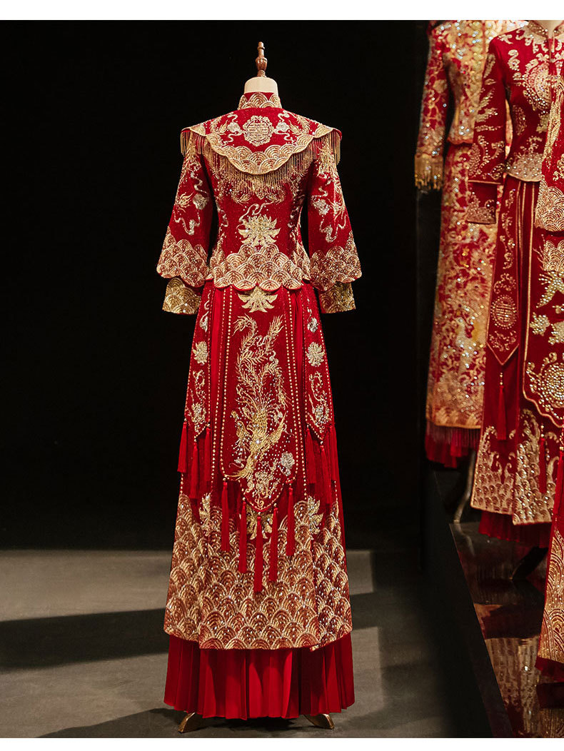 Pakaian Xiuhe Gaya Selendang Pengantin 2025 Gaun Naga dan Phoenix Baru Pernikahan Pakaian Pernikahan Cina Gaun Bersulang Pakaian Pernikahan Mewah