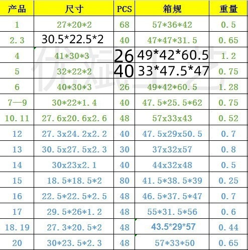 40*22.5*1.8 50PCS 46.5*46.5*41.5 27KG