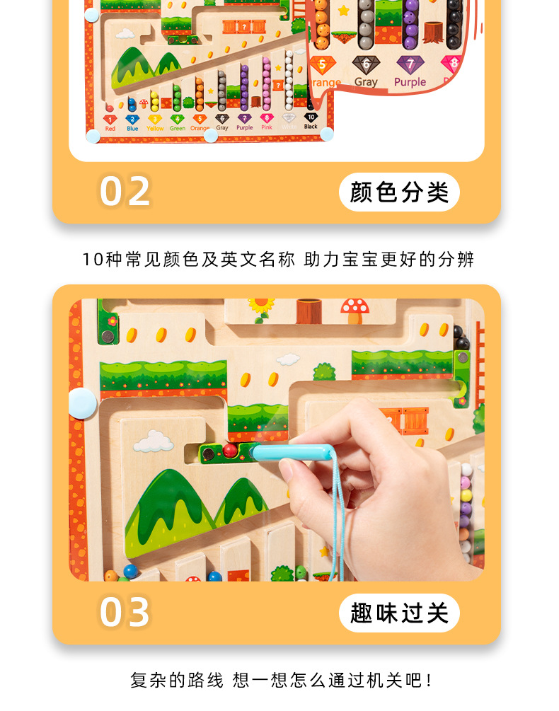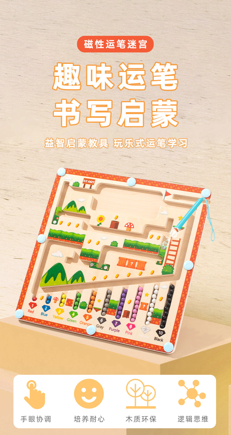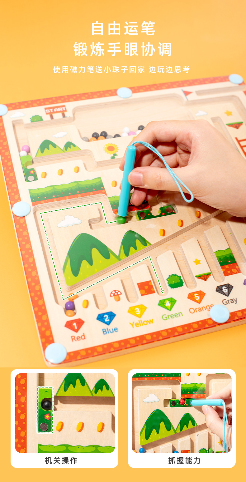 Mainan edukasi edukasi dini bayi fokus koordinasi mata tangan bayi labirin klasifikasi warna manik-manik pena magnetis menyenangkan