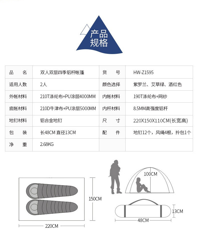 Tenda Luar Ruangan Serigala Jantan Lapisan Ganda Tenda Mendaki Gunung dan Mendaki Gunung Profesional Hangat dan Tahan Hujan Tiang Aluminium Ultraringan Tenda Gaya Berkemah Luar Ruangan