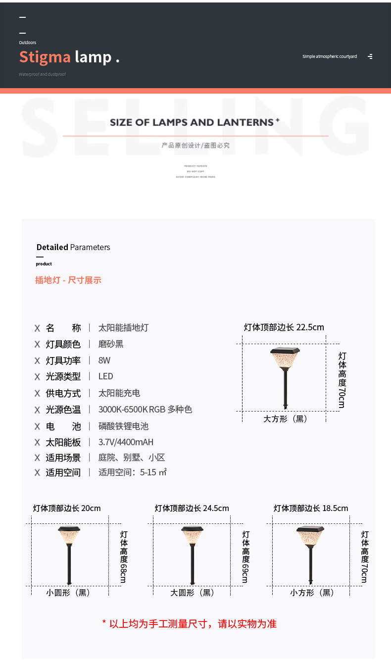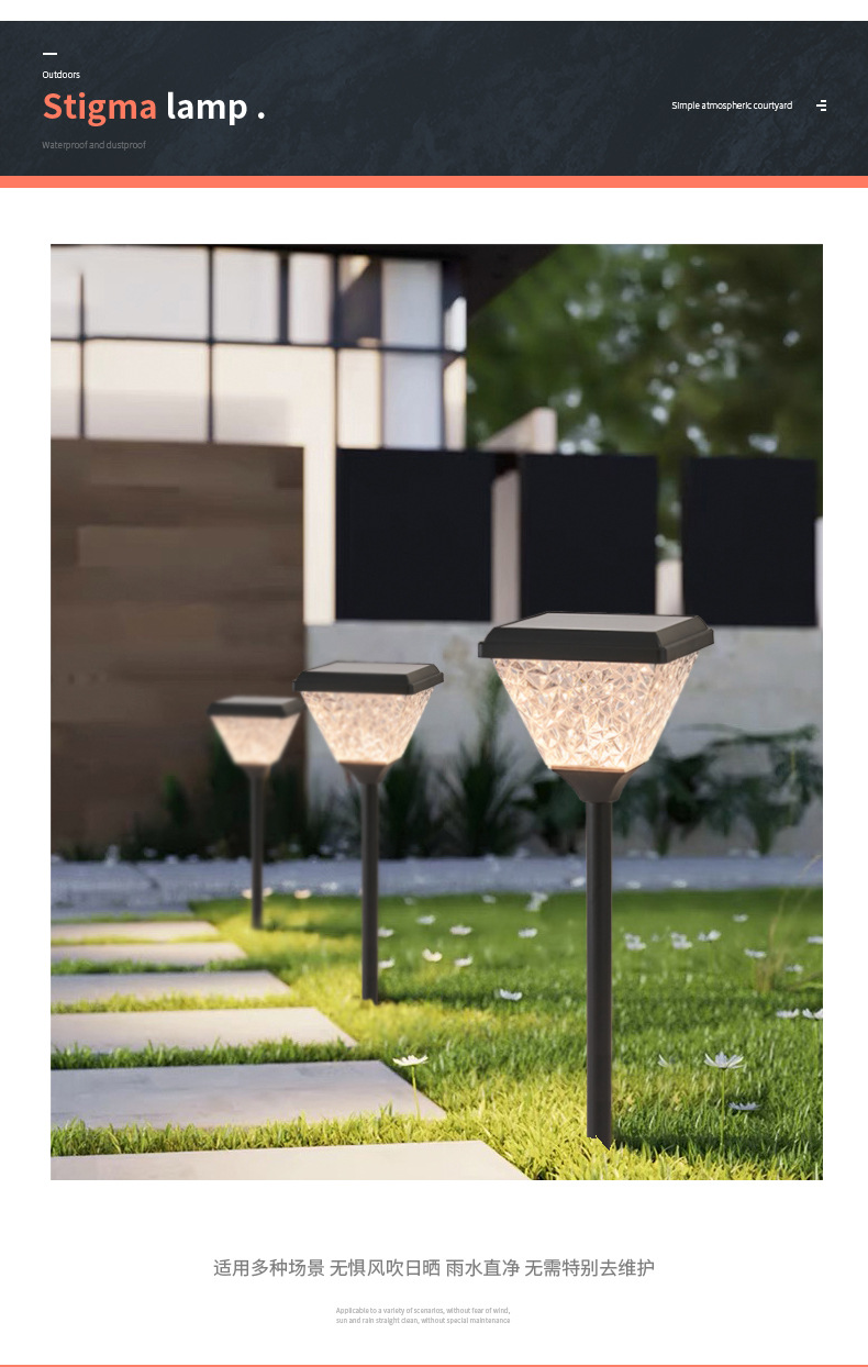 Lampu taman tenaga surya, lampu tanah LED tahan air berbahan aluminium sederhana, pencahayaan lanskap, untuk penggunaan luar ruangan.