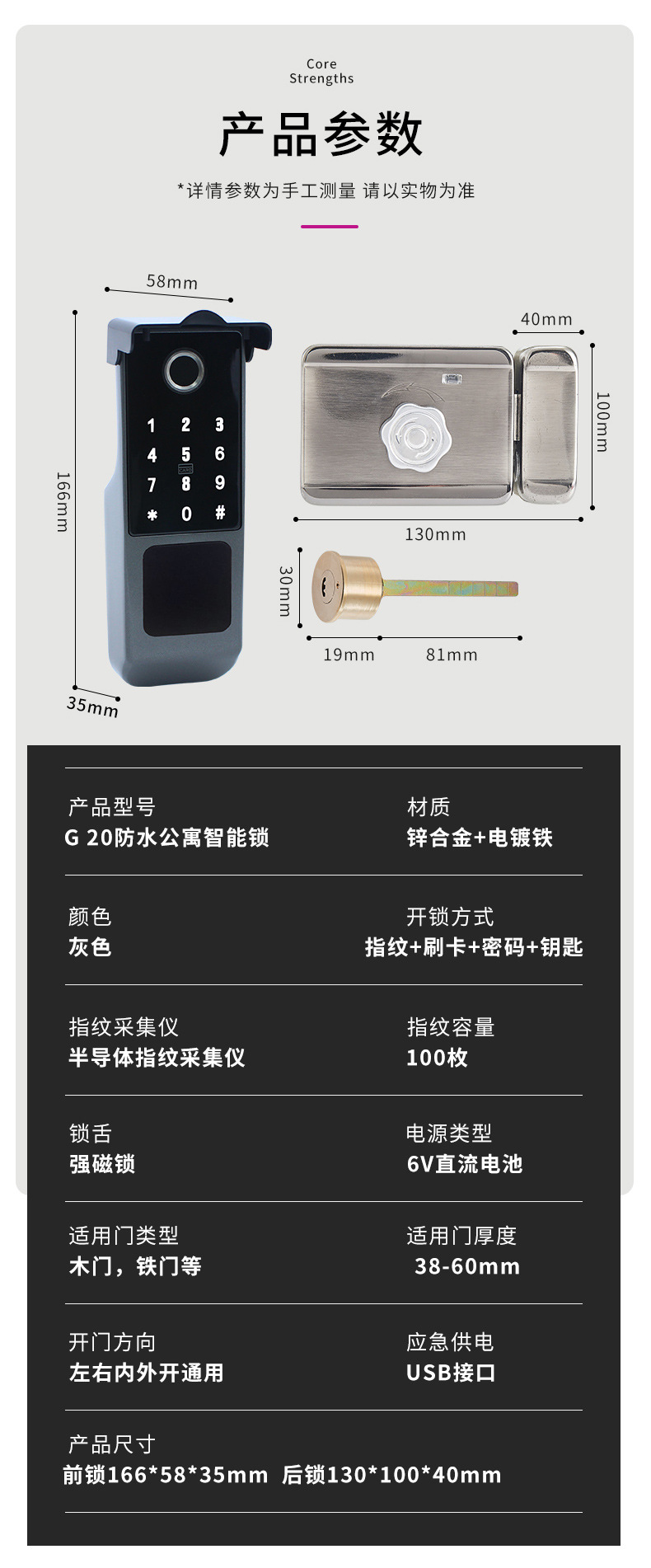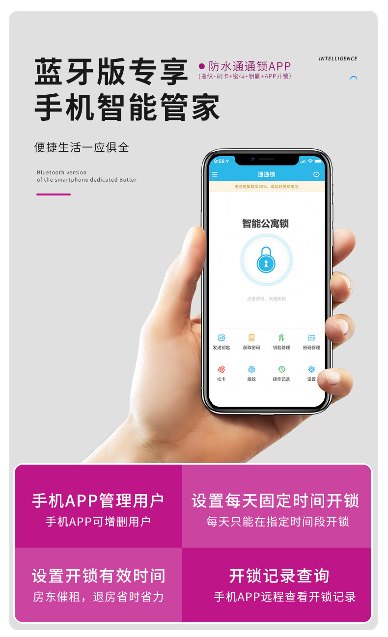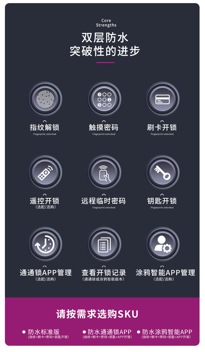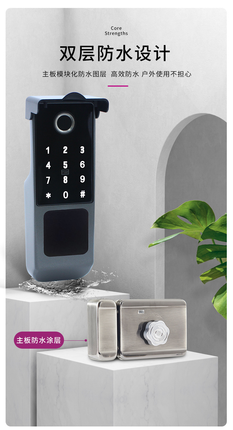Kunci pintu besi sidik jari tahan air, kunci eksternal kepala sapi kendali jarak jauh, catu daya eksternal dua sisi kunci pengontrol listrik