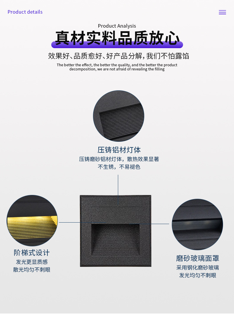 Lampu kaki LED, lampu pijakan, lampu tangga, lampu sudut lorong, lampu dinding tahan air, 6W tahan air dan tahan lama untuk penggunaan luar ruangan
