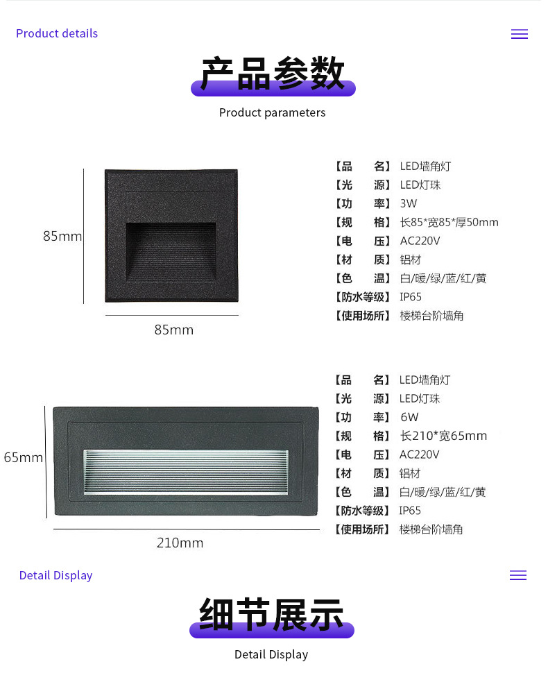 Lampu kaki/Lampu kaki dinding/Lampu langkah