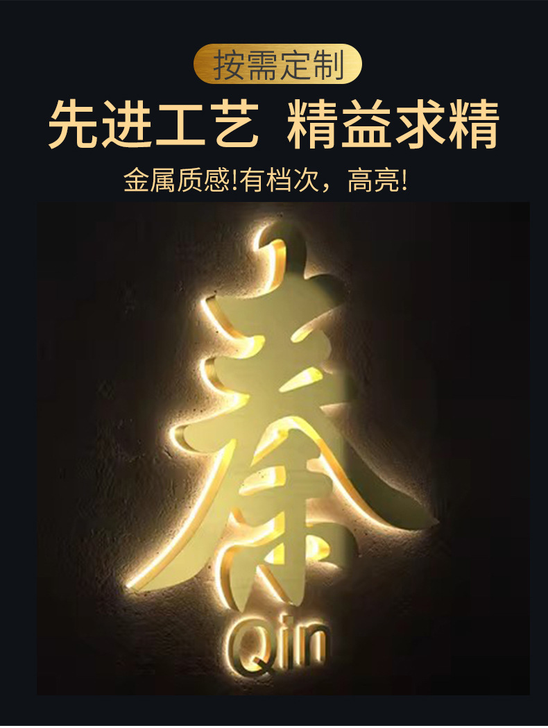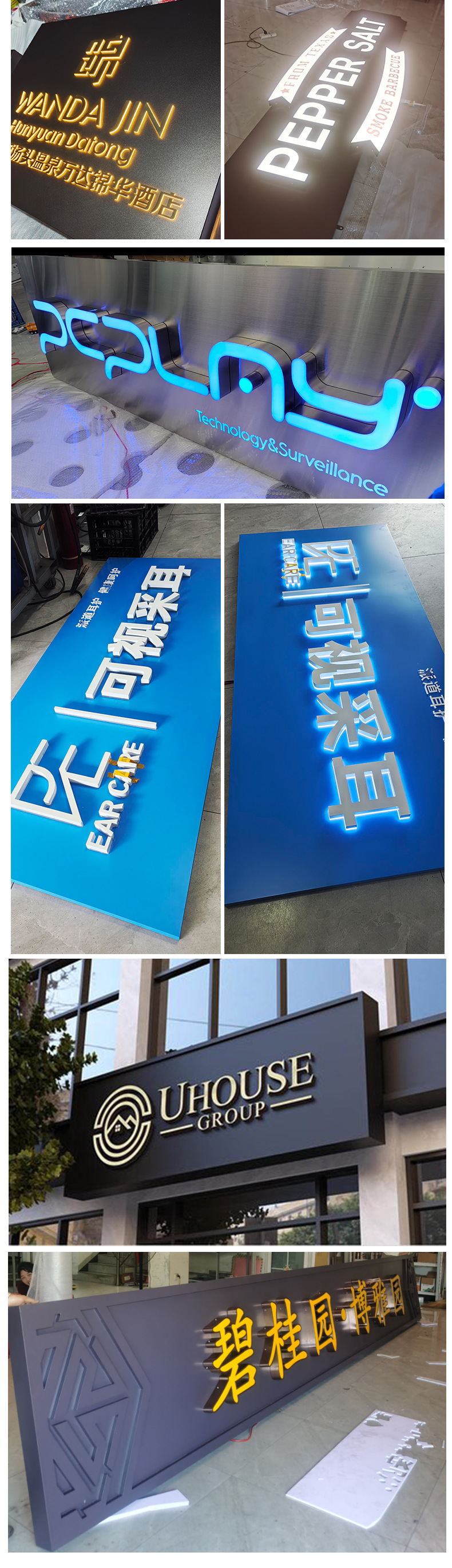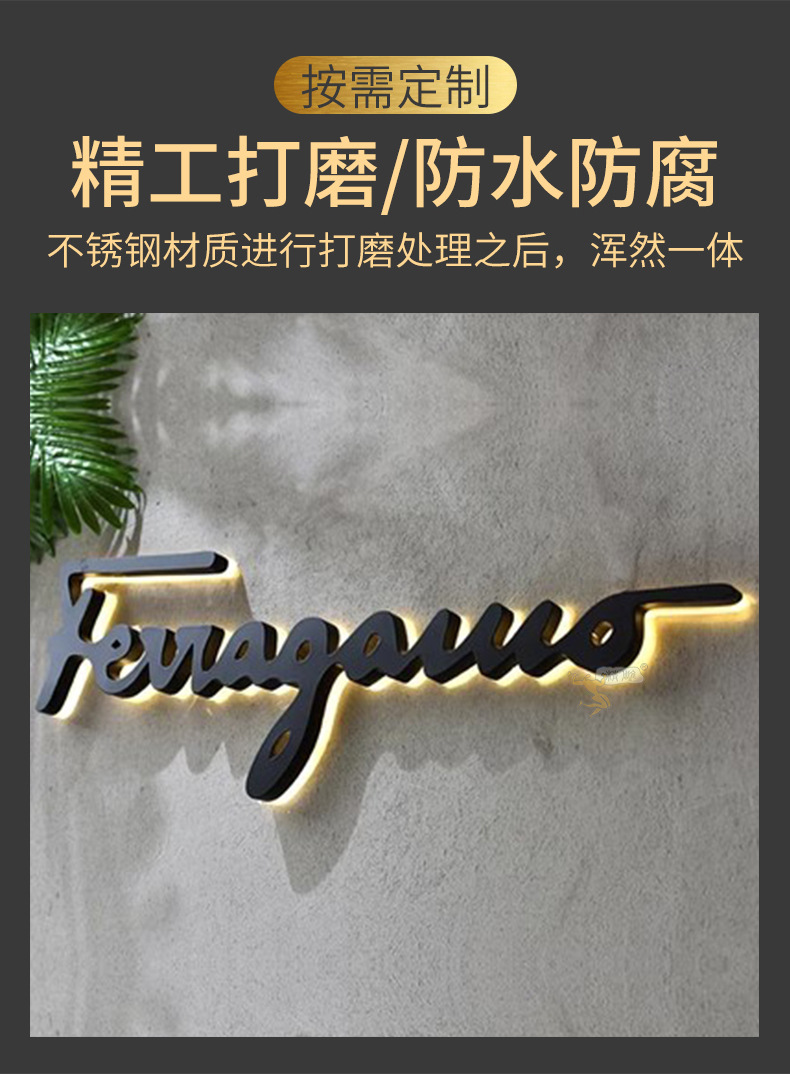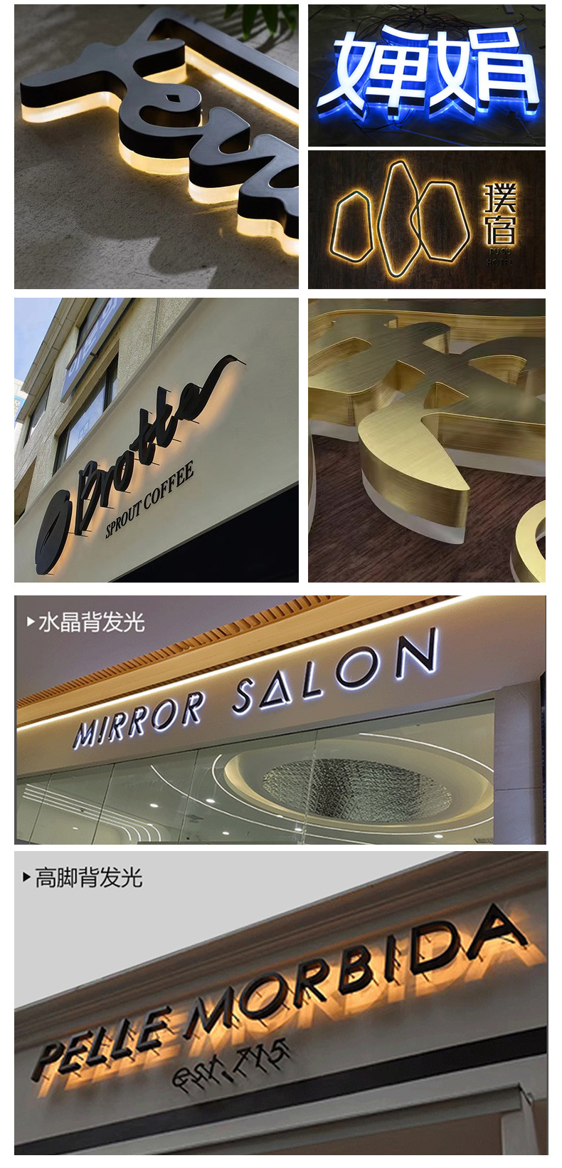 Pintu luar ruangan akrilik baja tahan karat LED tanda bercahaya cat belakang kustomisasi produksi toko huruf bercahaya