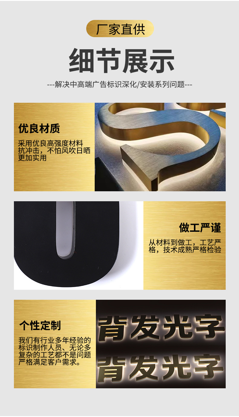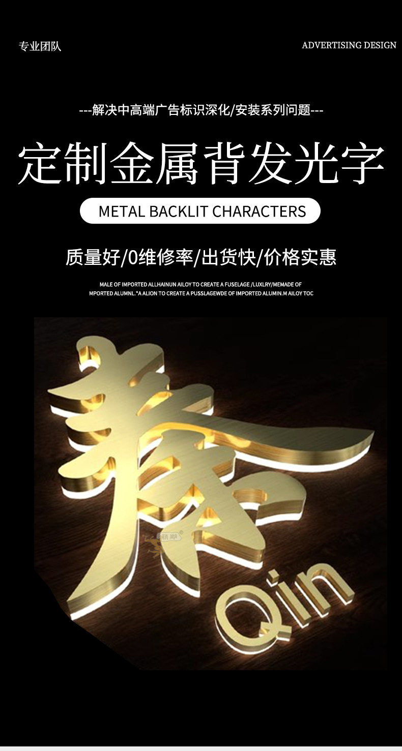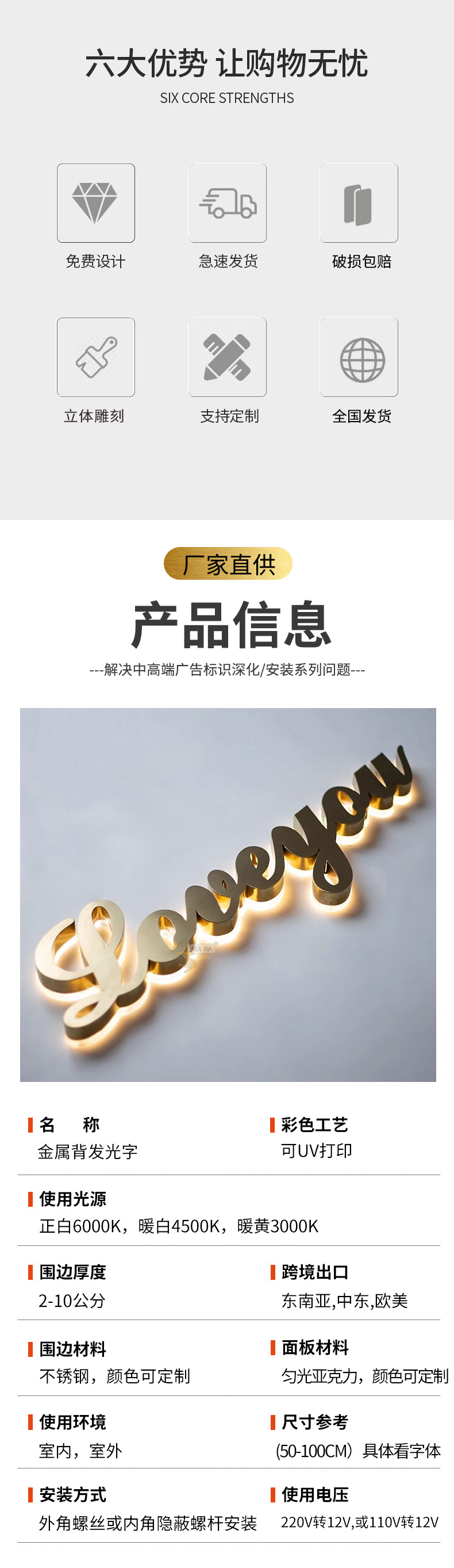 Pintu luar ruangan akrilik baja tahan karat LED tanda bercahaya cat belakang kustomisasi produksi toko huruf bercahaya
