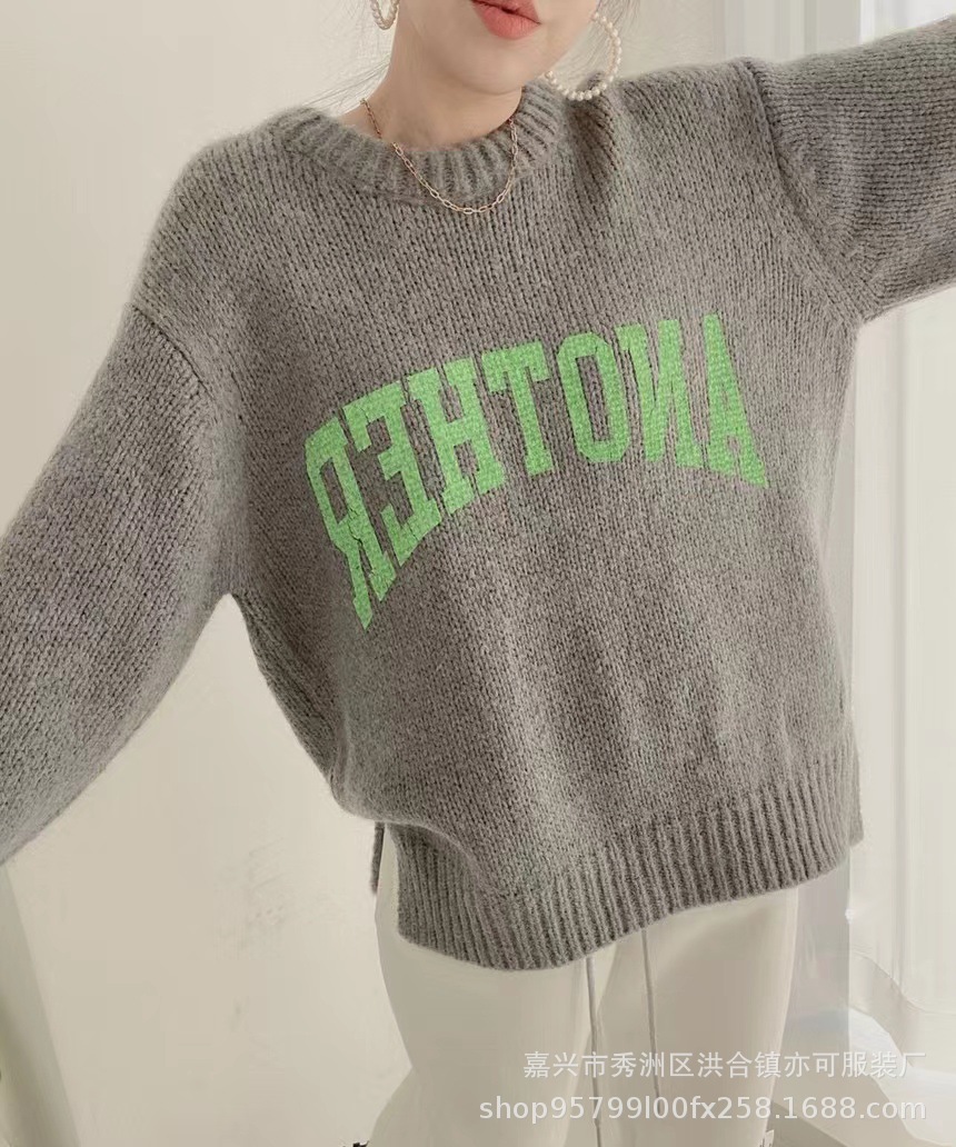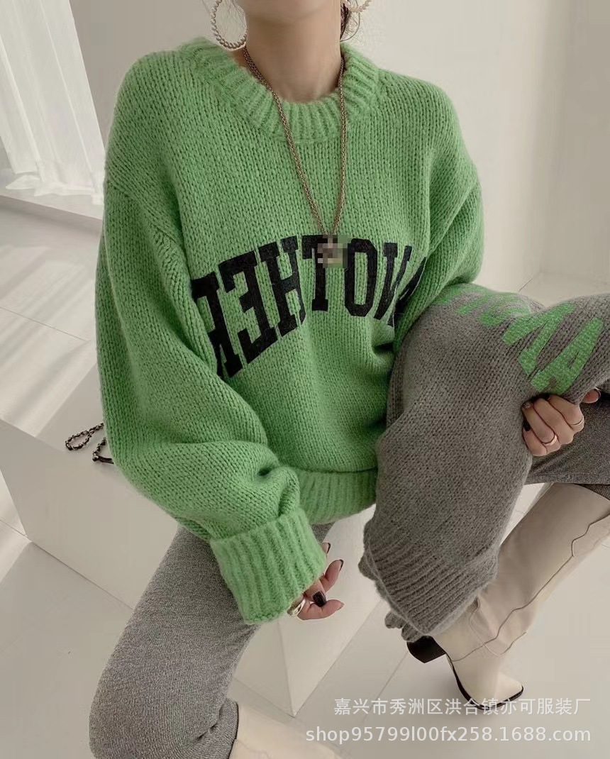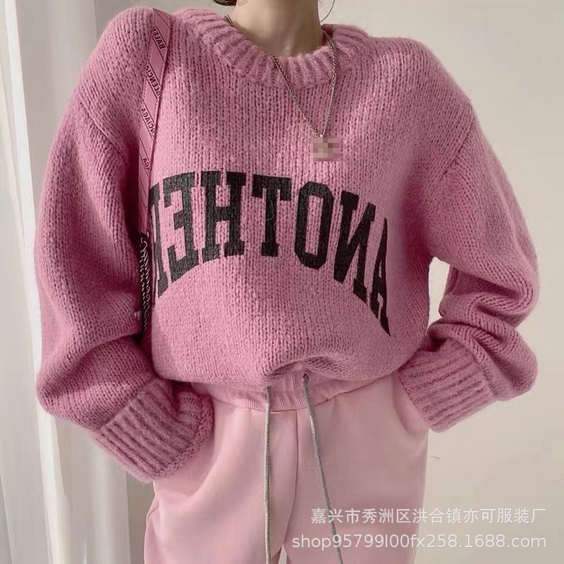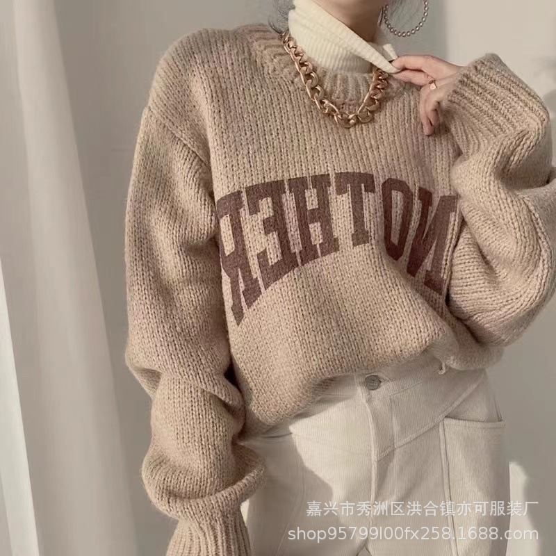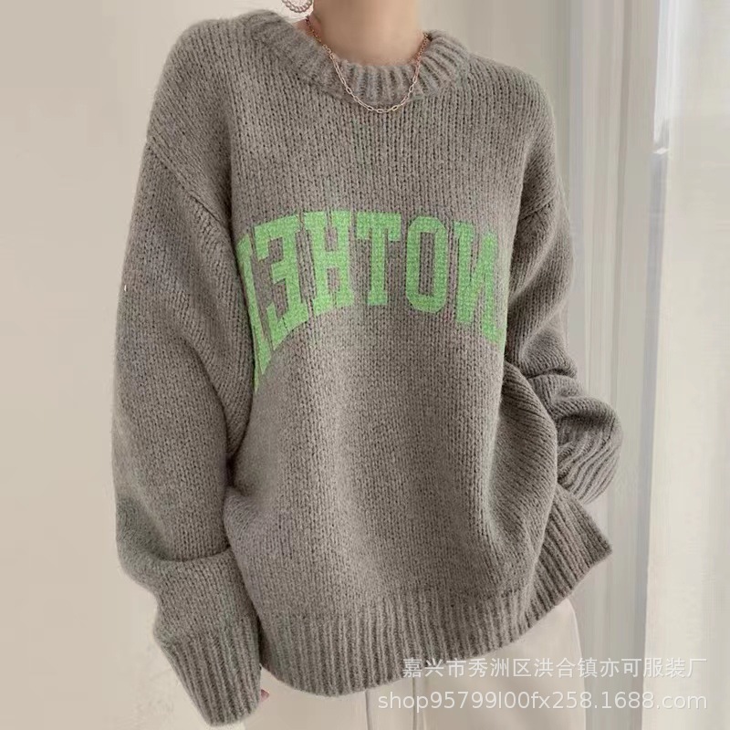 Dongdaemun sweater wanita, model Internet selebriti retro sweater leher bulat longgar musim gugur dan musim dingin