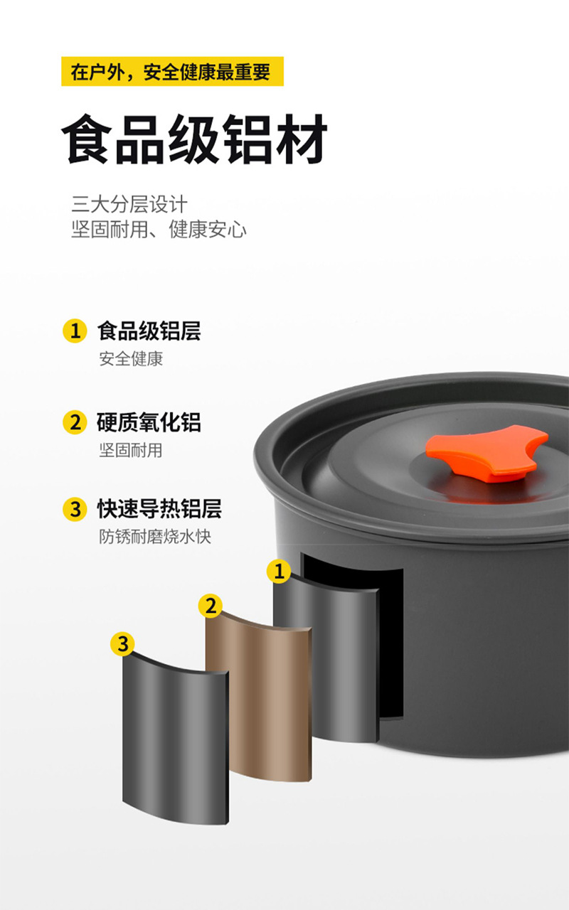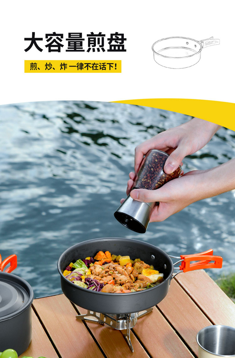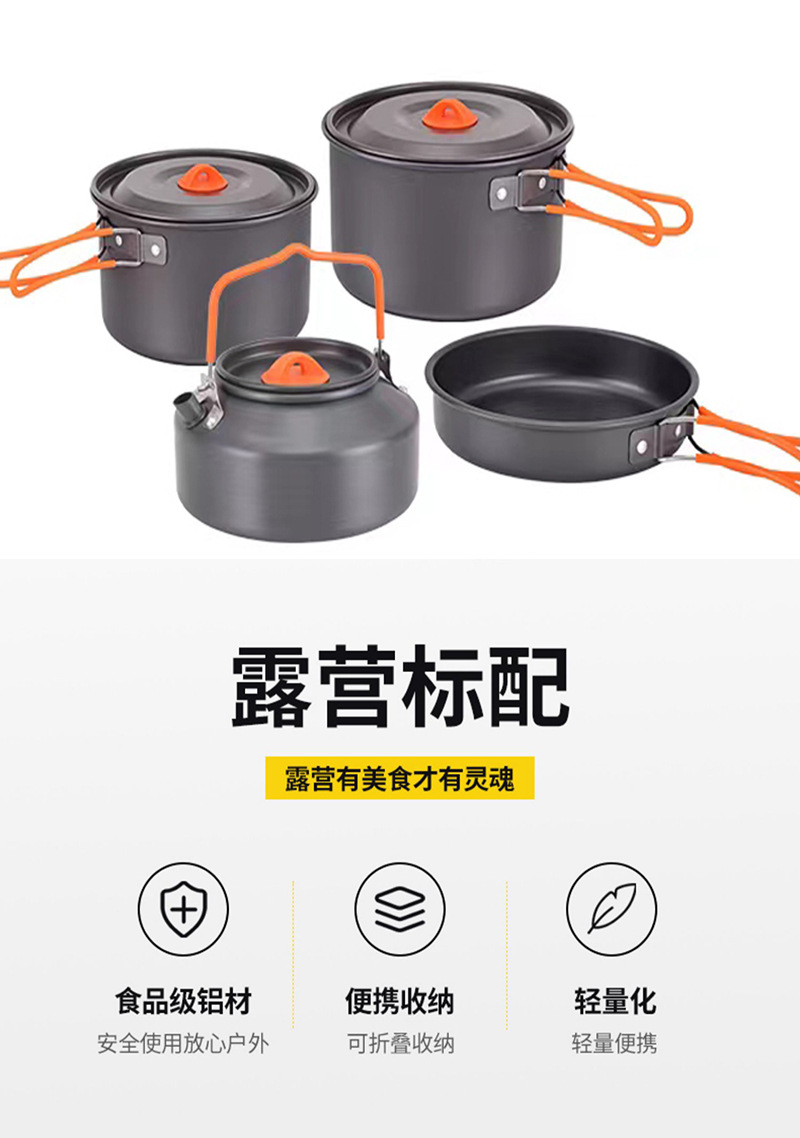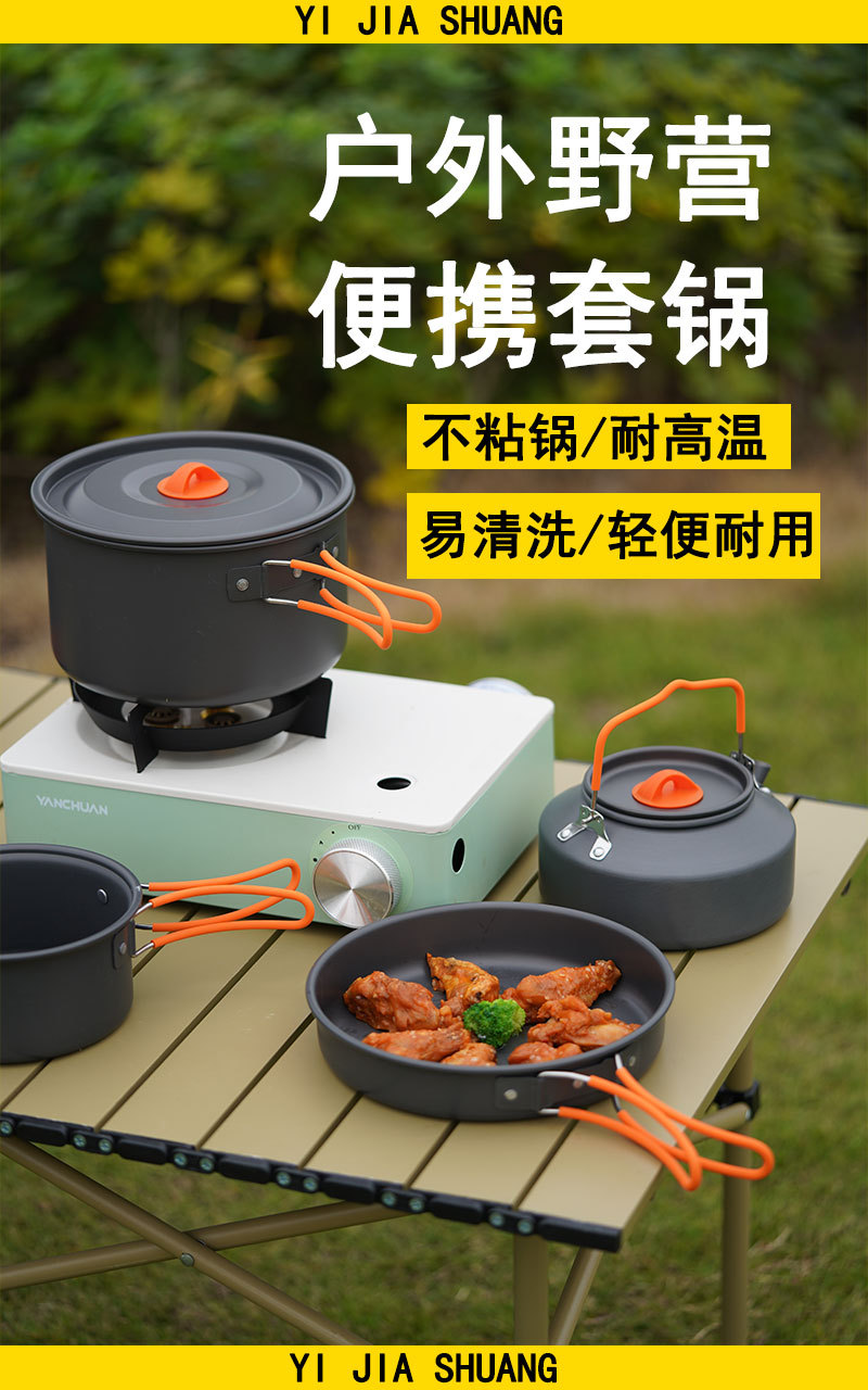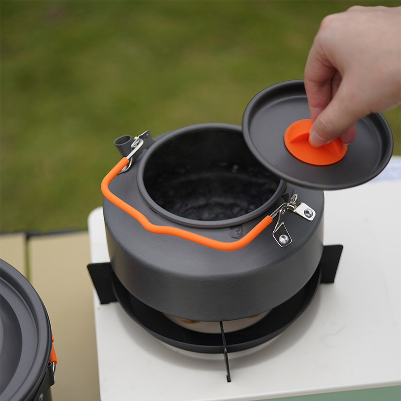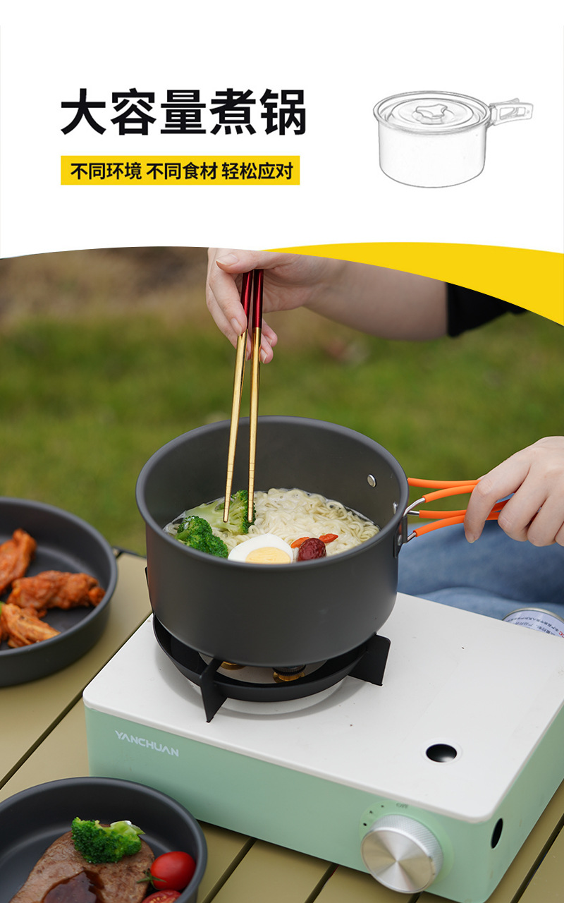 Set panci luar ruangan, panci berkemah, peralatan masak, ketel portabel, set peralatan makan aluminium, panci, perlengkapan teko