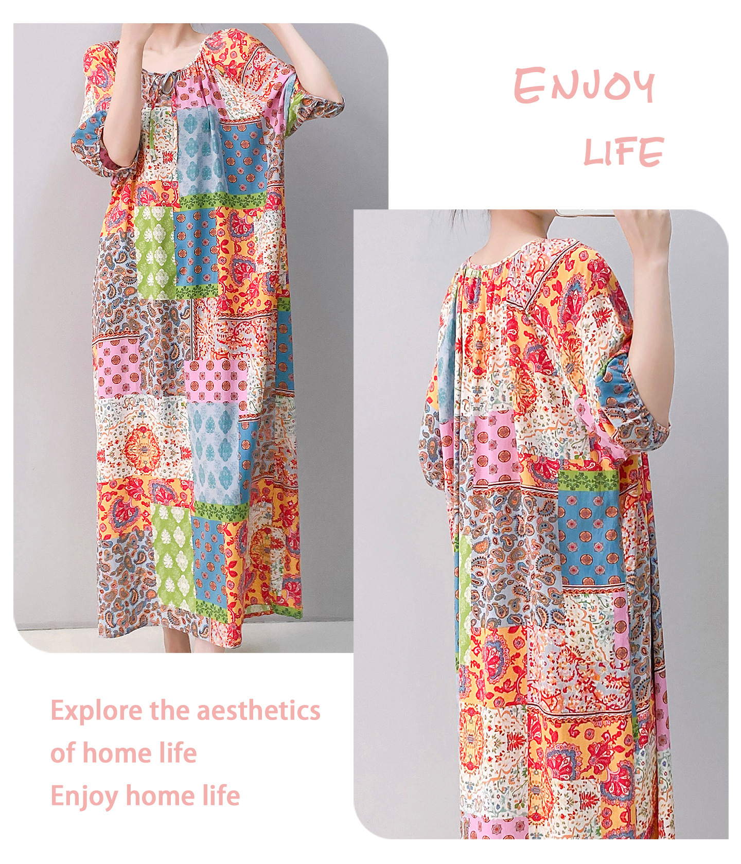 Gaun malam gaya nasional wanita, gaun tidur elegan kelas tinggi sutra katun liburan tepi pantai gaya China baru musim panas 2024