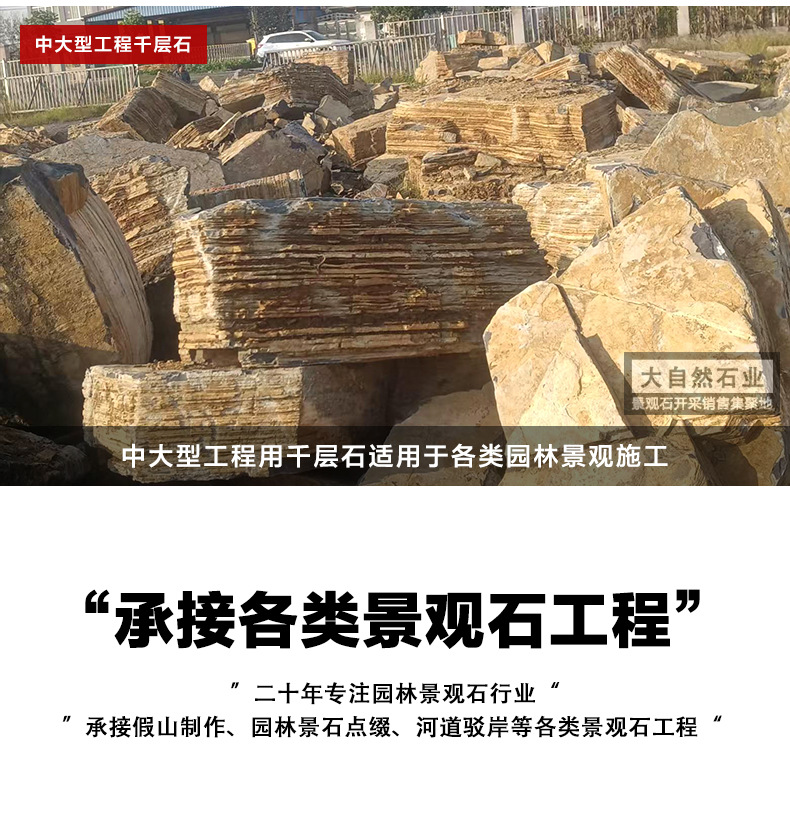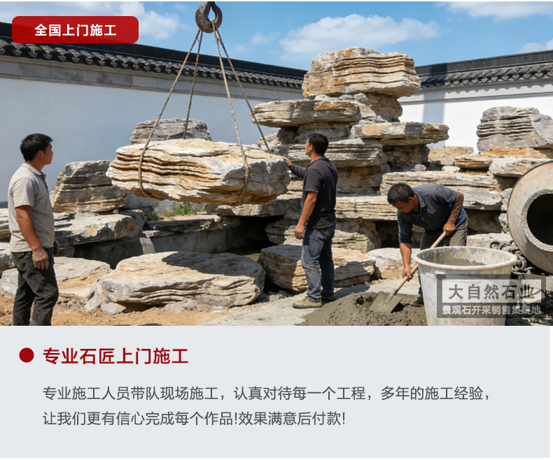 Grosir material batu berlapis ribuan lapis, batu lanskap alami, batu Lingbi alami untuk kolam ikan halaman, desain dan konstruksi batuan.