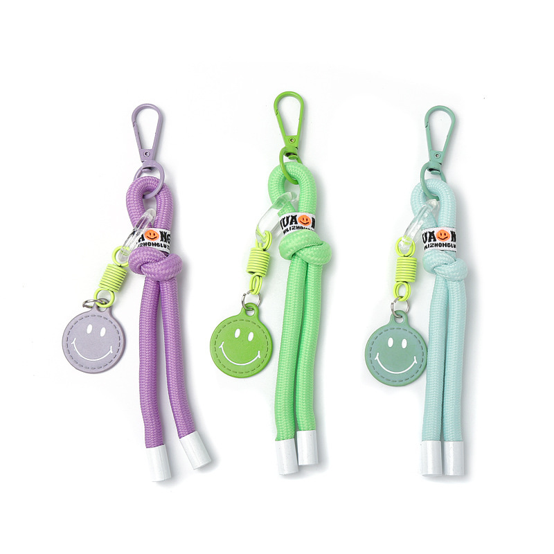 Ransel tali penyandang tenunan tangan Smiley tas sekolah tali penyandang grosir Aksesori liontin gantungan kunci sederhana warna-warni