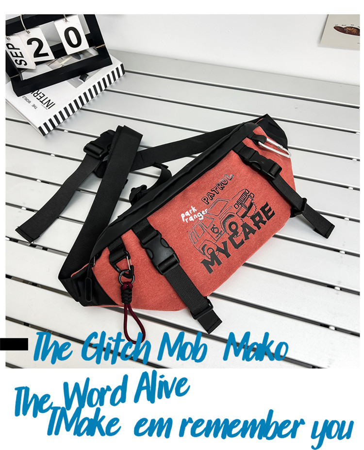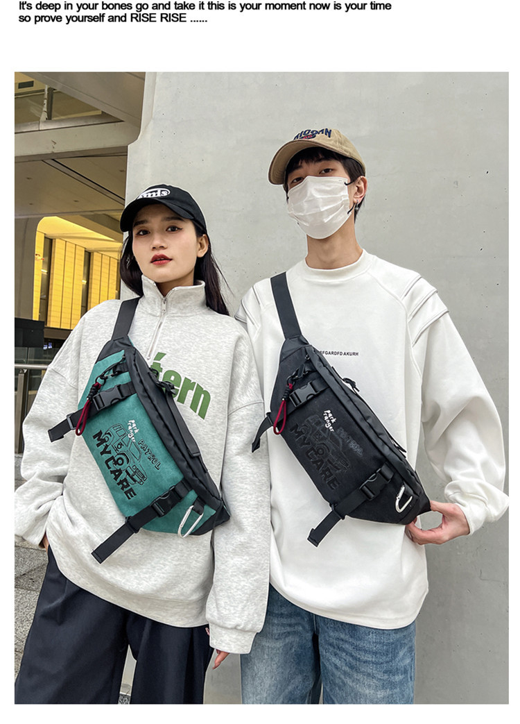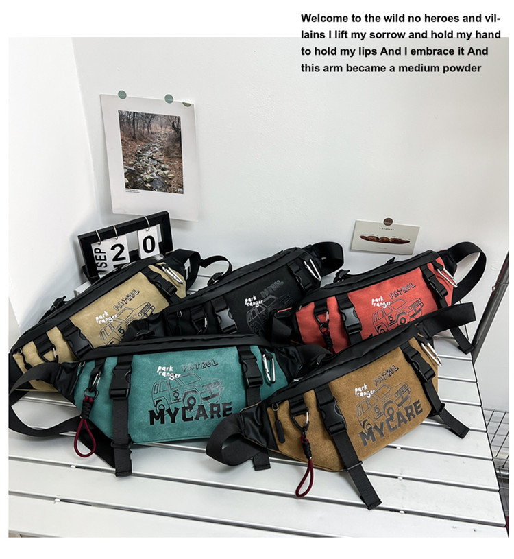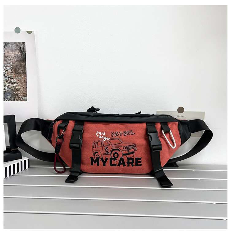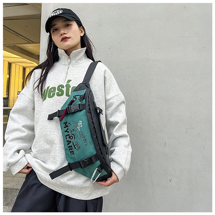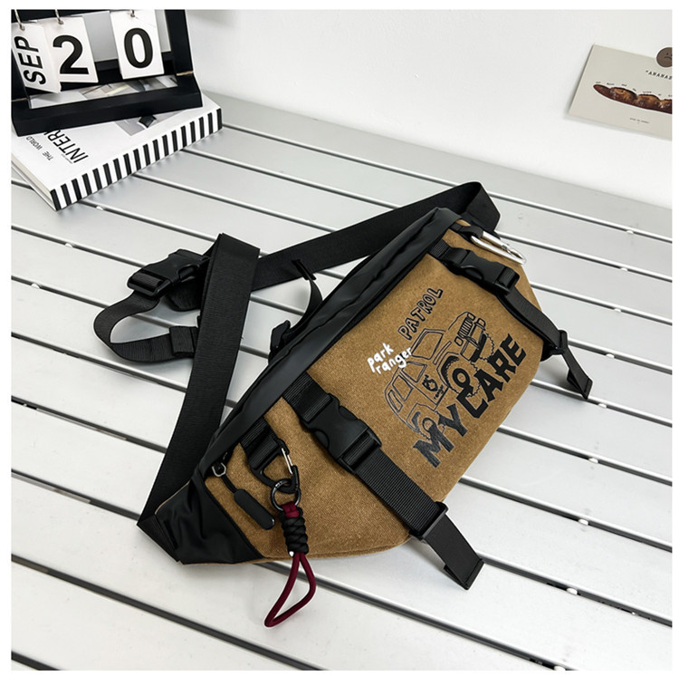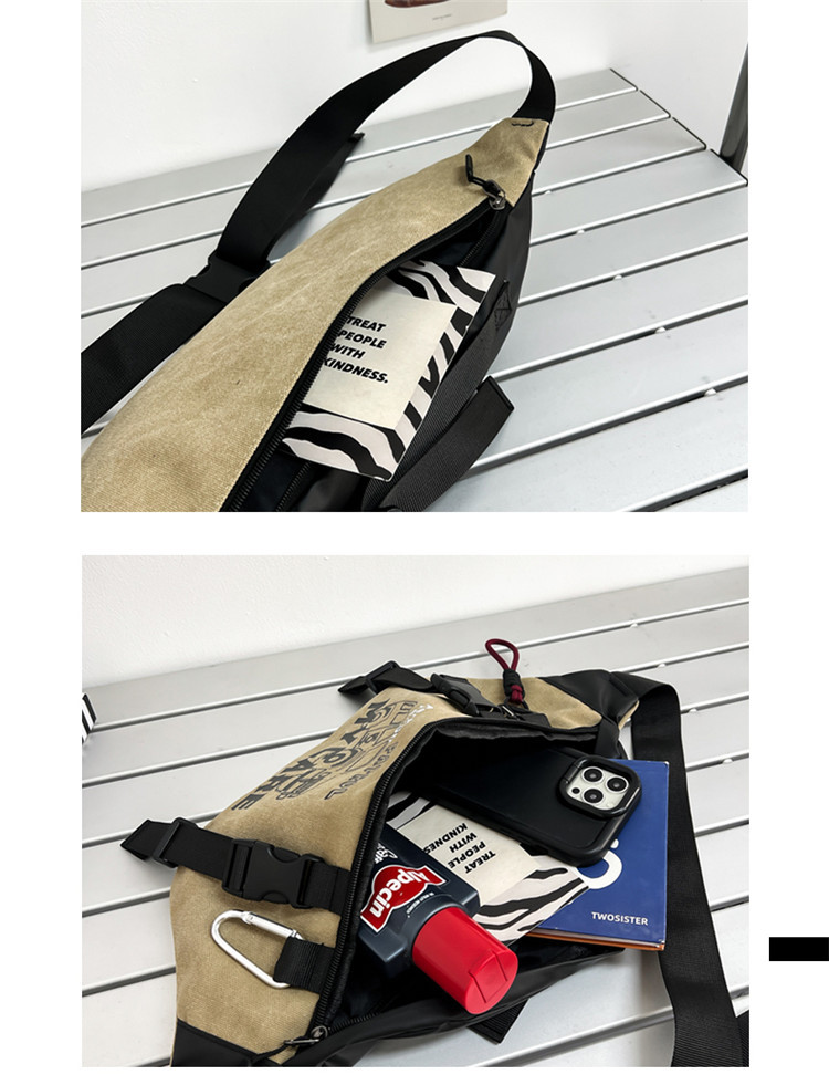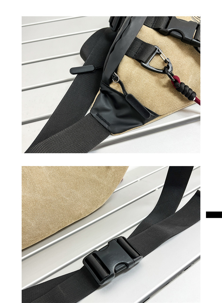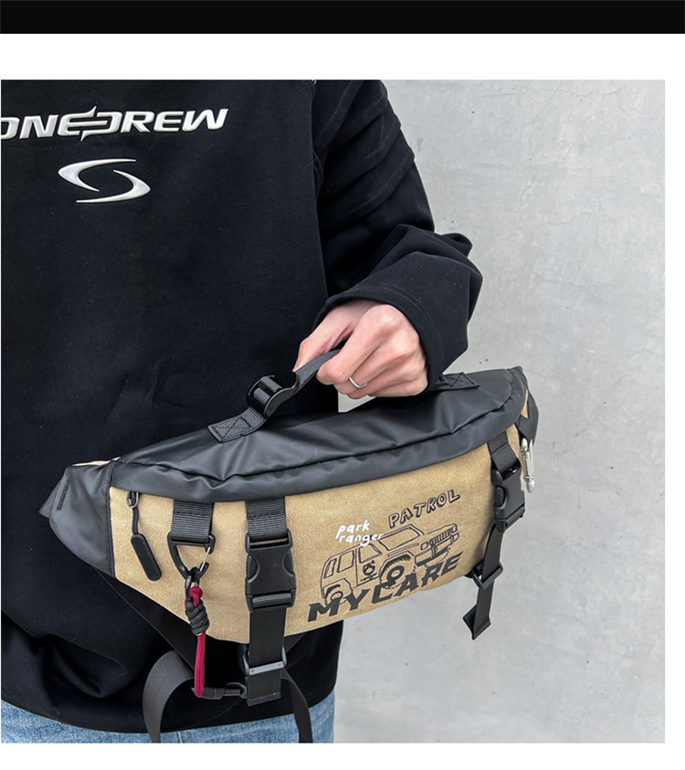 Tas dada selempang kanvas, tas bersepeda modis, pakaian kerja kasual tas kecil perjalanan luar ruangan trendi, tas pinggang portabel fungsional