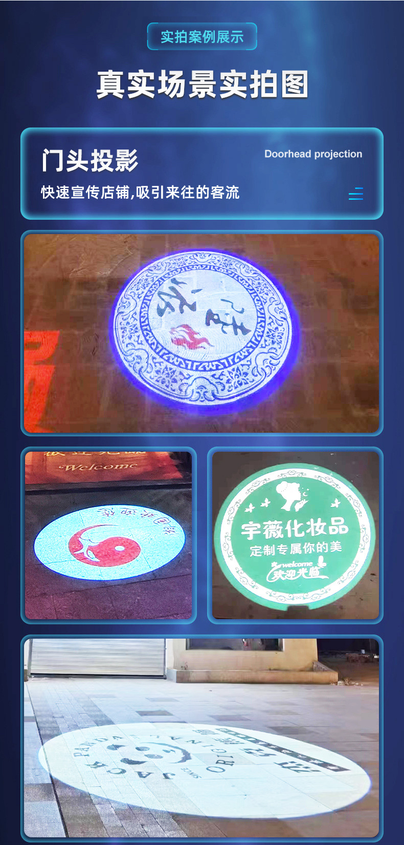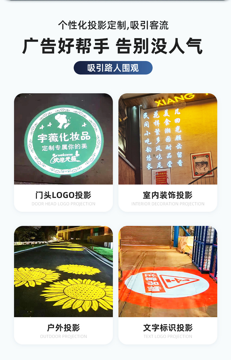 Lampu proyeksi etalase iklan, lampu etalase satu bagian, lampu logo papan nama toko, lampu iklan LED pola berputar untuk penggunaan di luar ruangan.