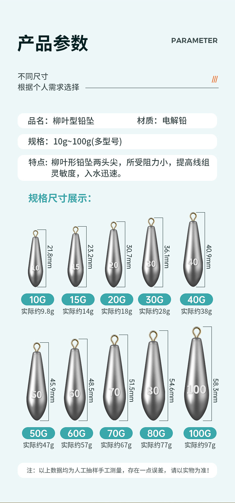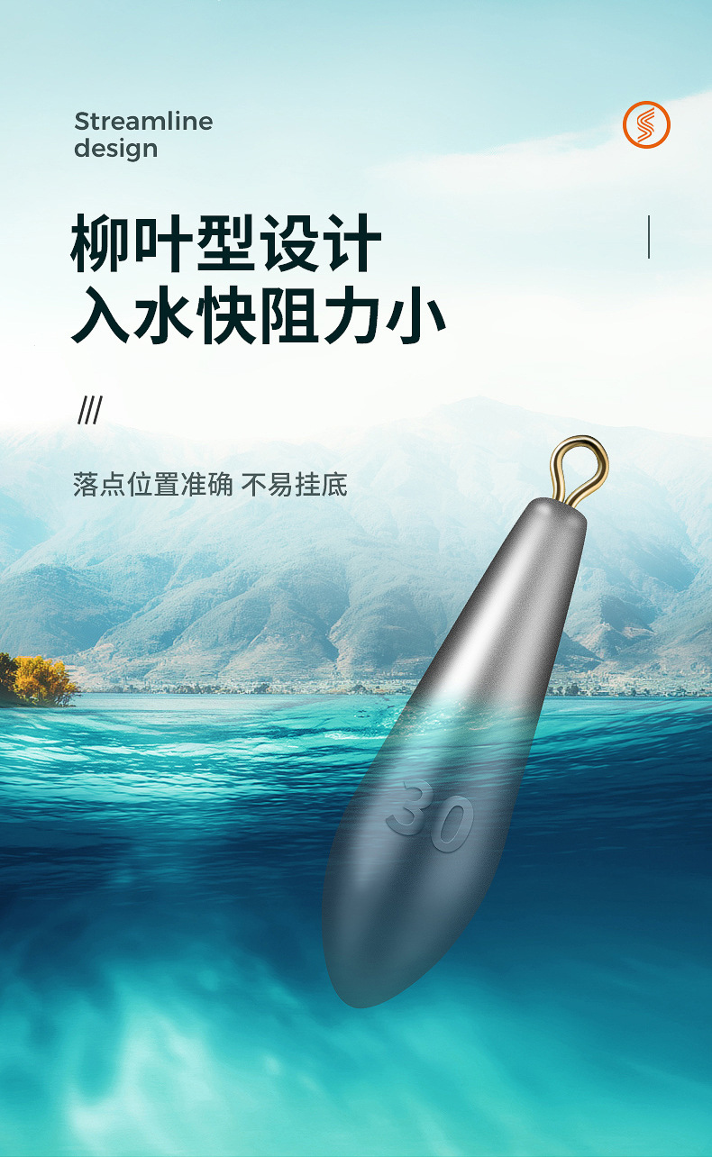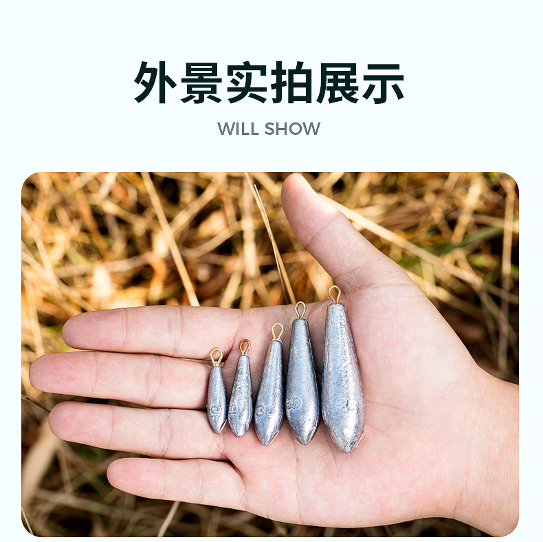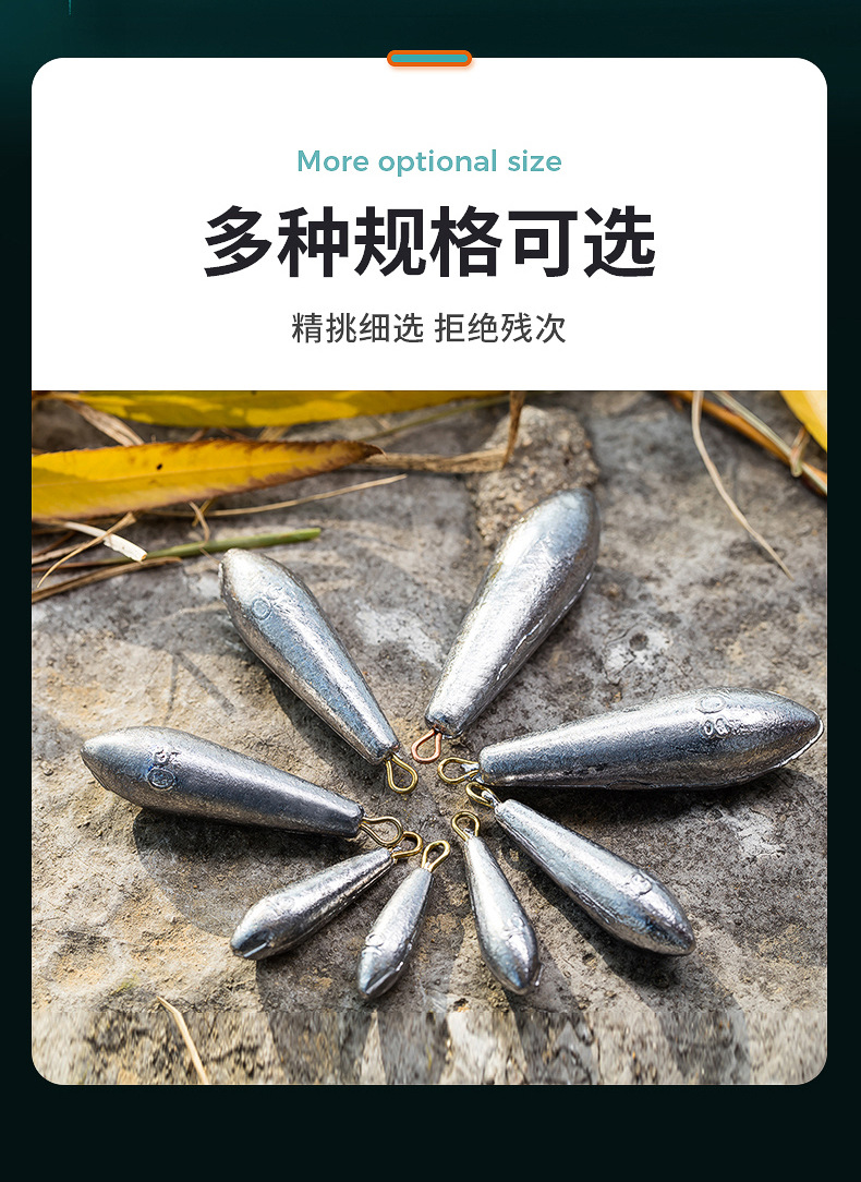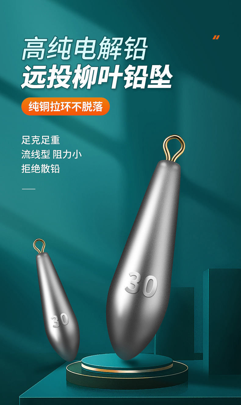 Tetesan air jenis daun Dedalu liontin timah batang rakit tongkat laut lemparan panjang dengan cincin kaki gram liontin timah memancing aksesori alat memancing ikan mas