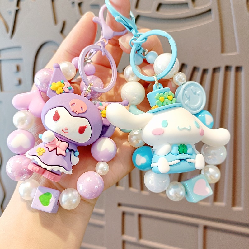 Gelang kunci mobil liontin tas lucu anak perempuan gantungan kunci boneka kartun Sanrio musim bunga rantai manik-manik baru