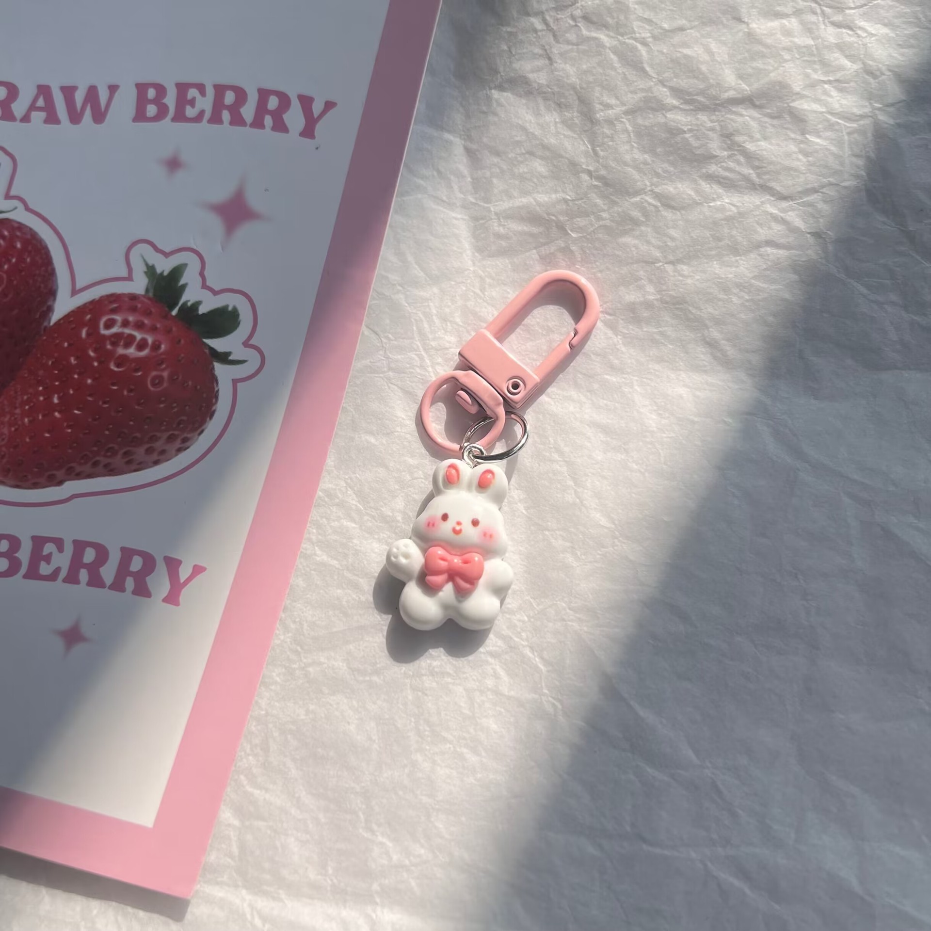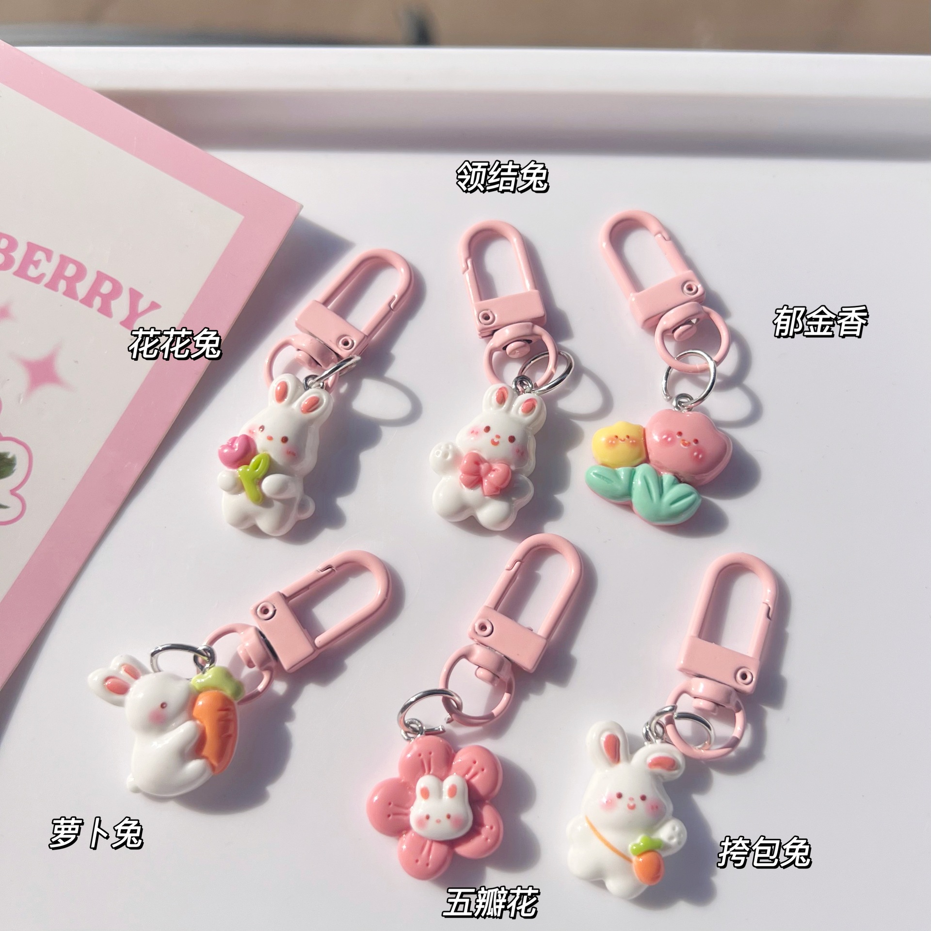 Gantungan kunci kelinci lobak bunga lucu liontin tas sekolah hati gadis manis perhiasan gantung merah muda hadiah pacar