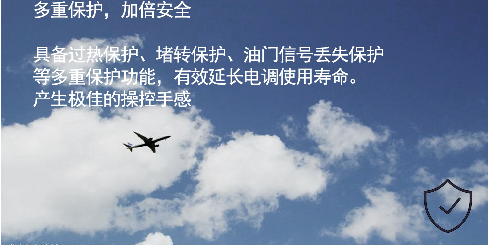 8.油门行程可设定,以兼容不同的遥控器,具有线性调速手感.
