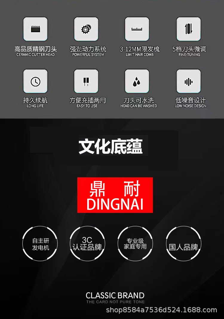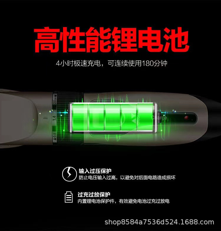 产品配件:说明书、四个限位梳、一个USB充电线、一瓶润滑油、一只清洁刷、
