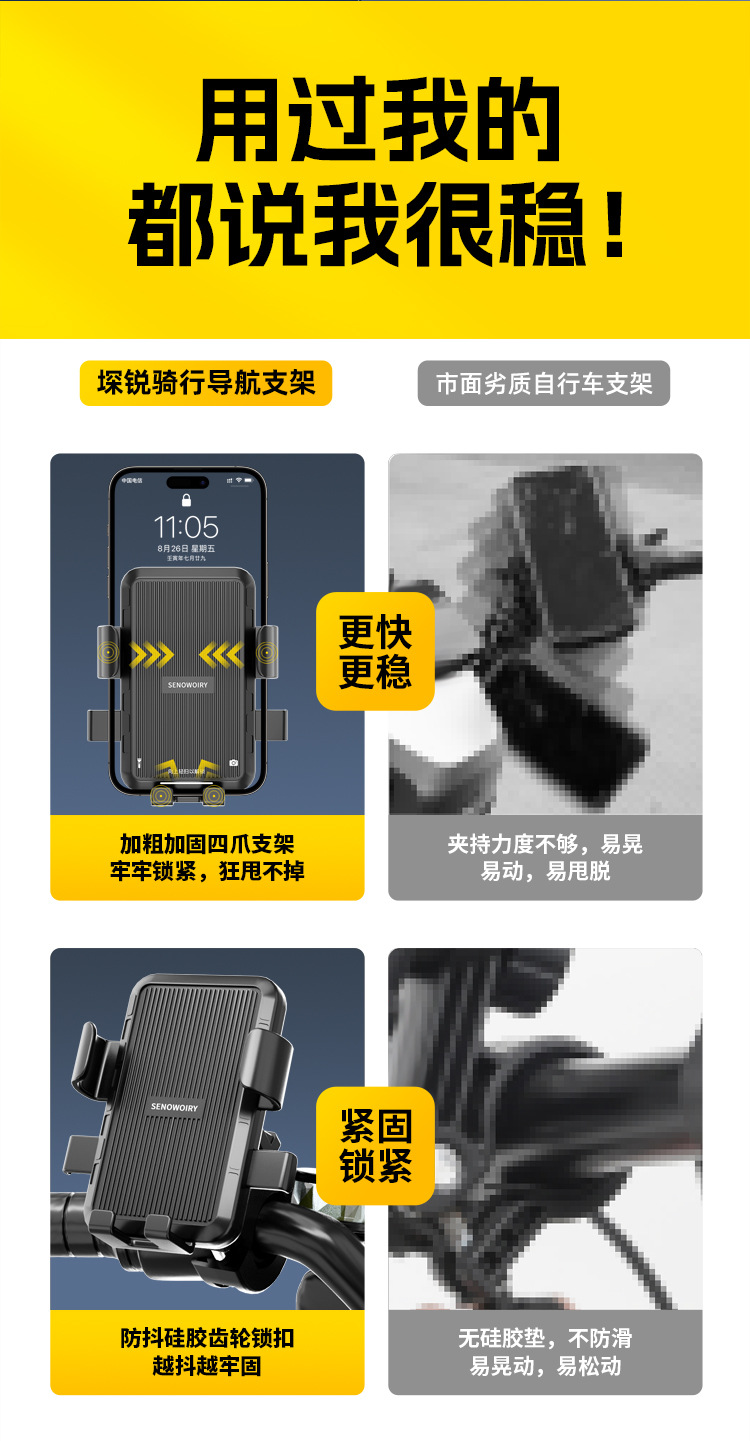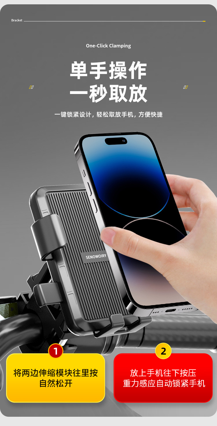 Dudukan ponsel elektrik sepeda, dudukan telepon genggam pengendara tahan guncangan dengan braket tetap navigasi berkendara sepeda motor