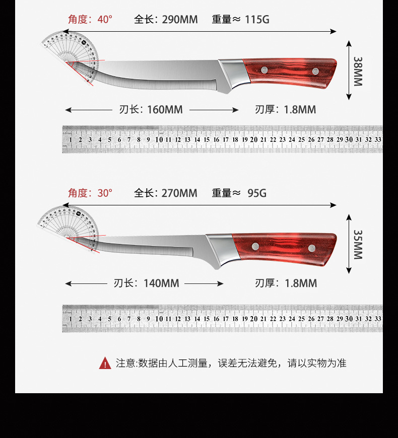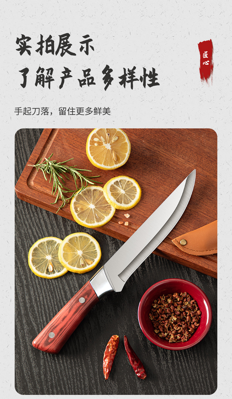 Pisau pemotong khusus untuk membunuh tulang babi, pisau pemotong daging, pisau daging imitasi tajam dengan pola Rosewood, pisau pemotong ujung domba