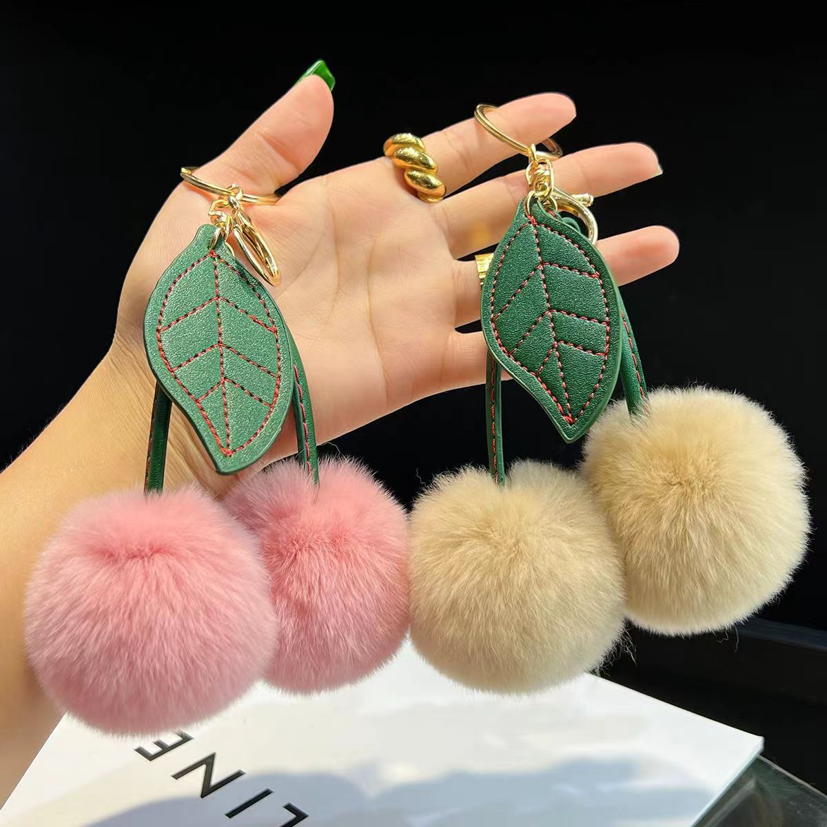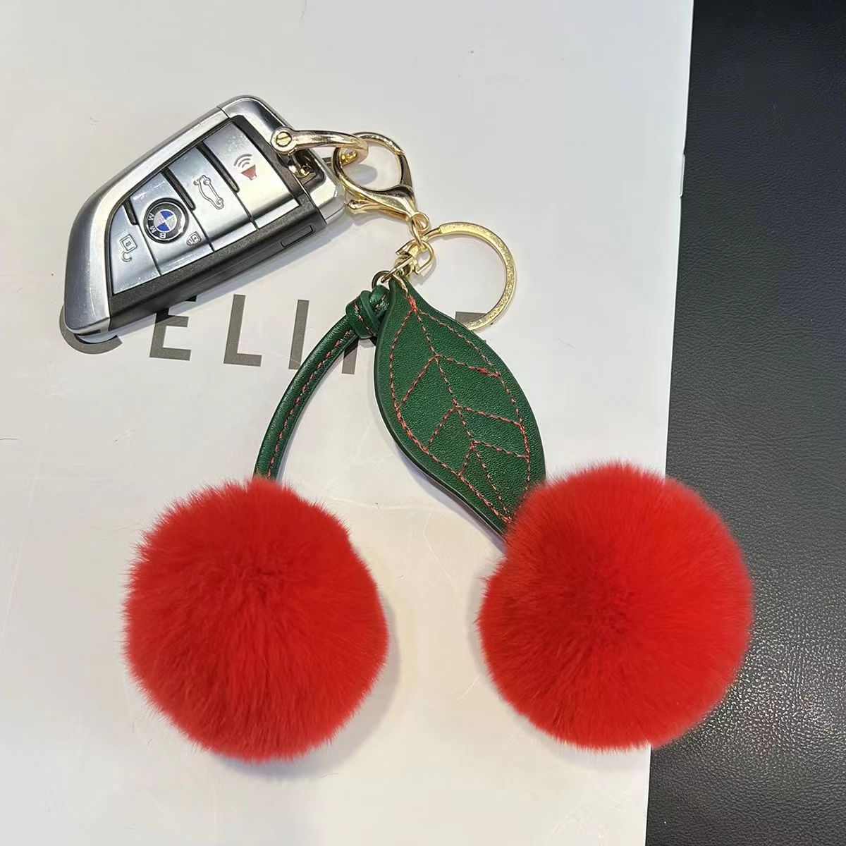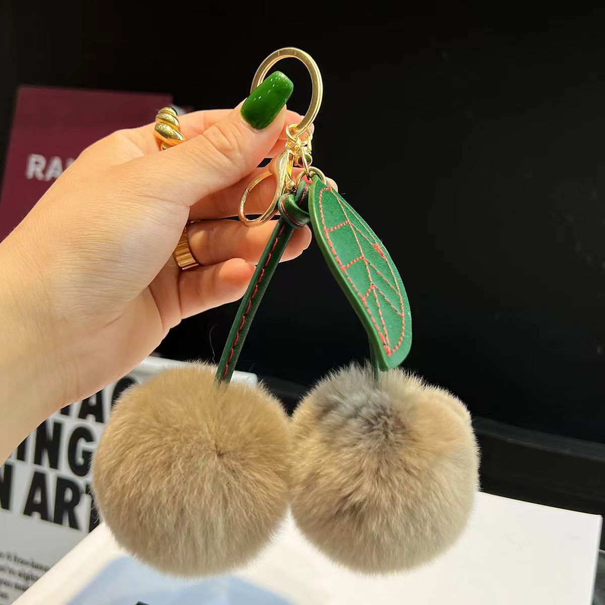 Liontin Ceri Mewah Bulu Kelinci Rex Imitasi Gantungan Kunci Mobil Modis Liontin Mewah Tas Wanita Gaya Pasangan