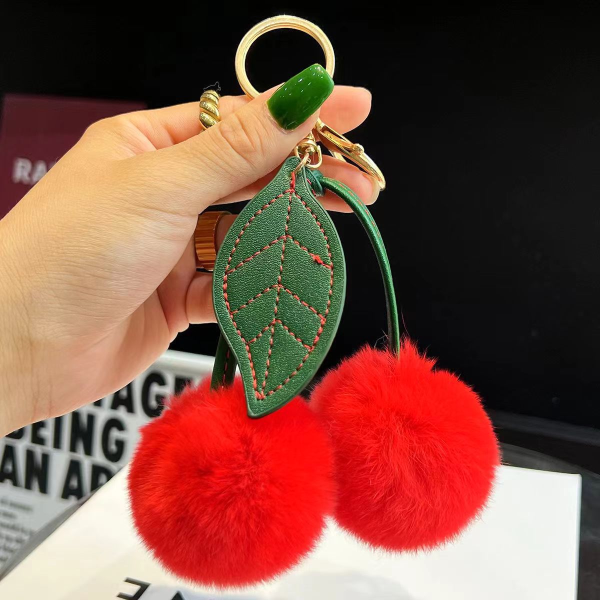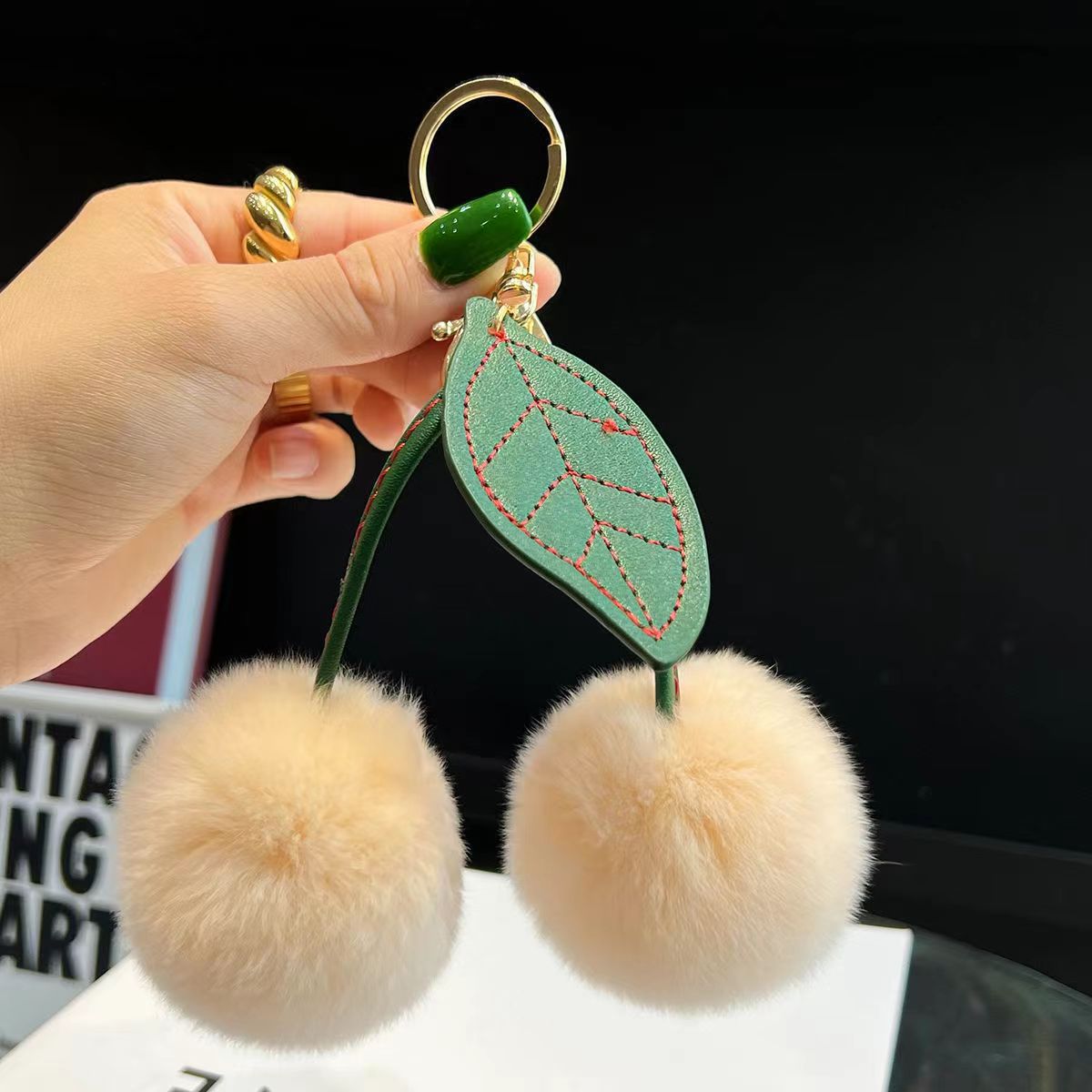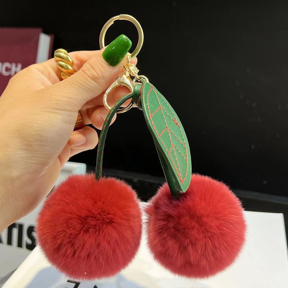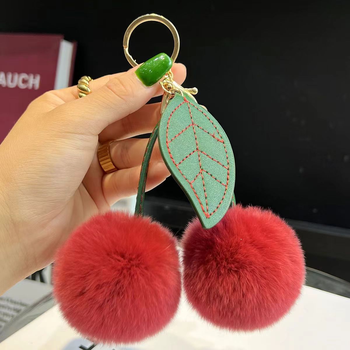 Liontin Ceri Mewah Bulu Kelinci Rex Imitasi Gantungan Kunci Mobil Modis Liontin Mewah Tas Wanita Gaya Pasangan