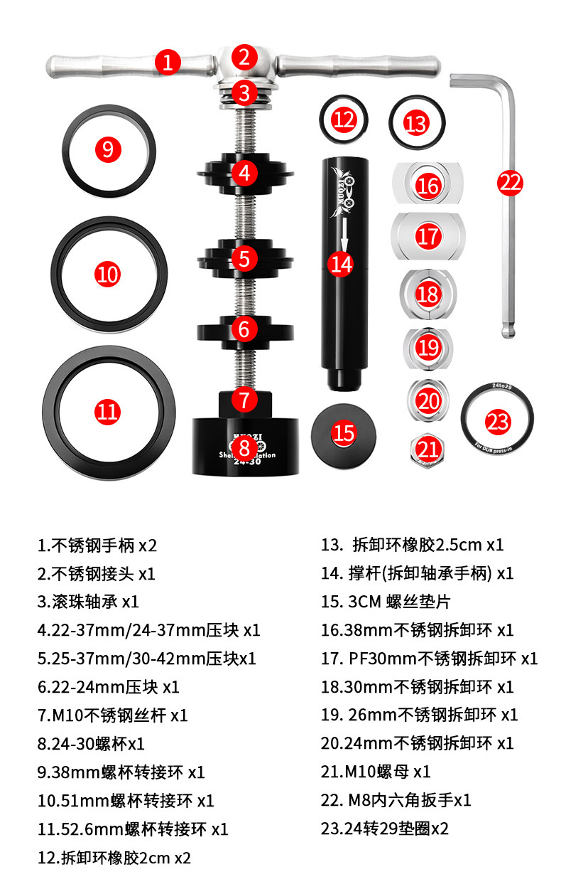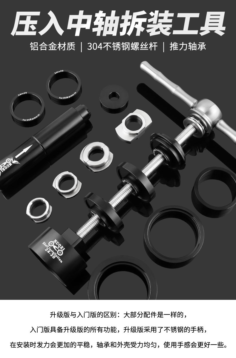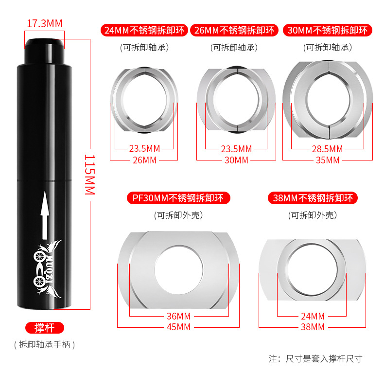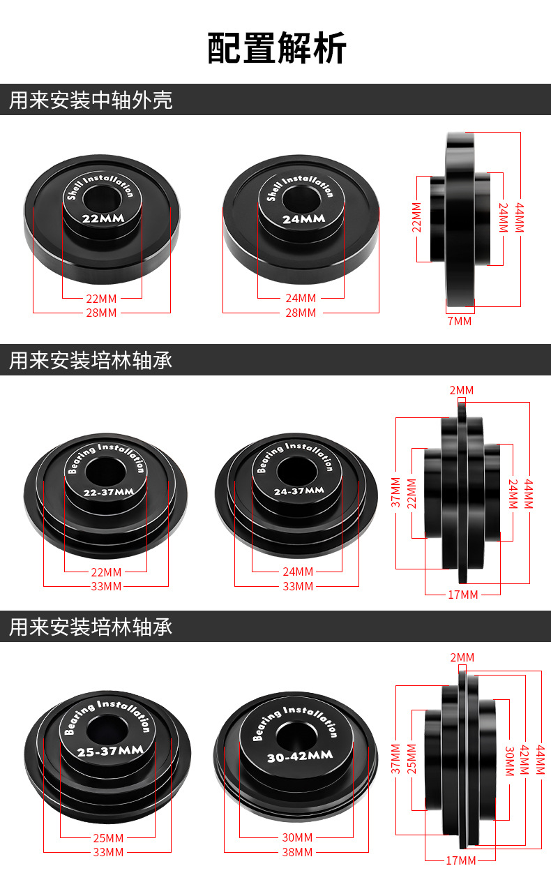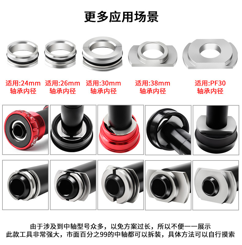 适用多种压入式BB中轴规格,安装与拆卸只要这一组即满足所有需要(禁止碗组压入)