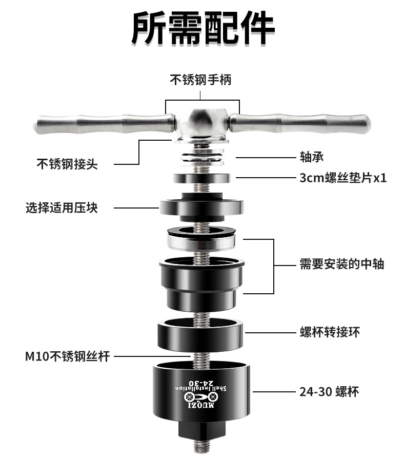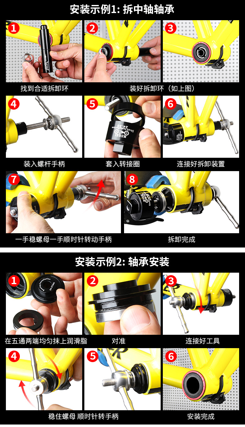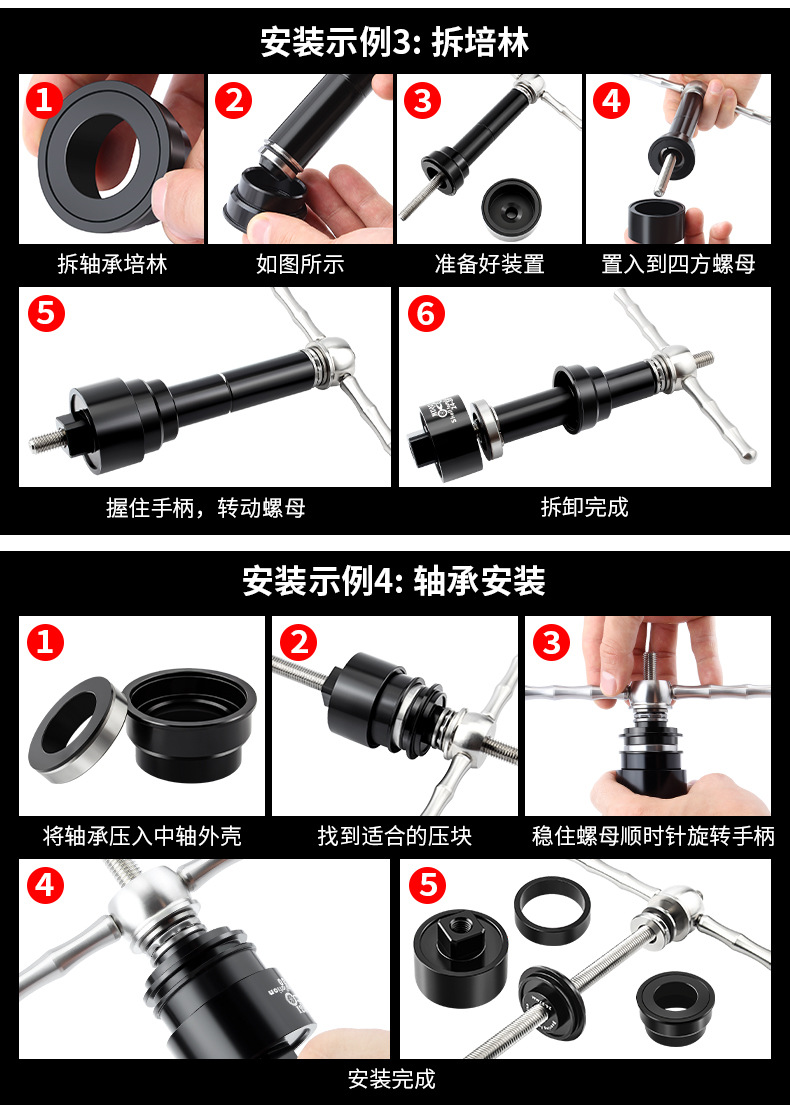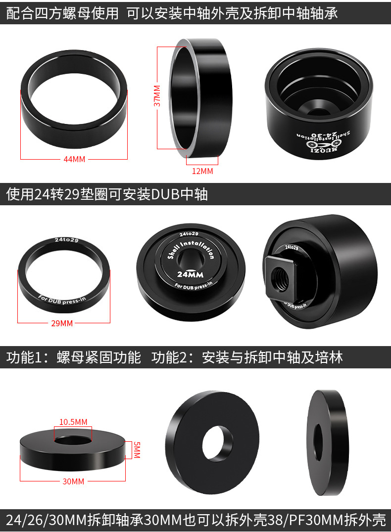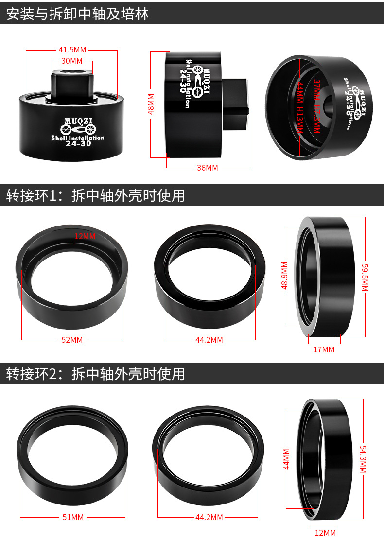 适用多种压入式BB中轴规格,安装与拆卸只要这一组即满足所有需要(禁止碗组压入)