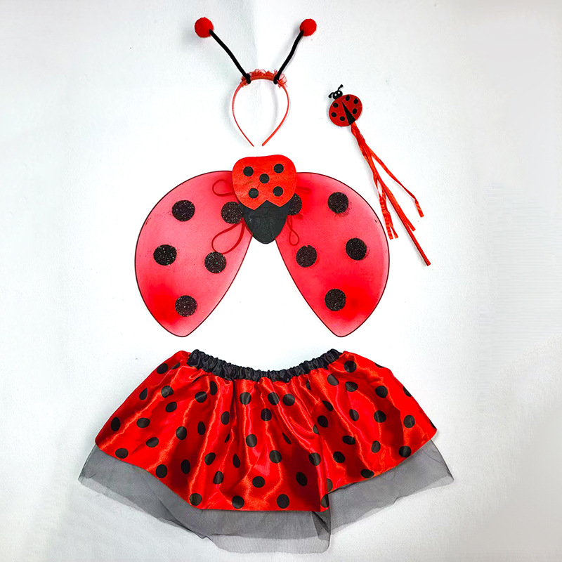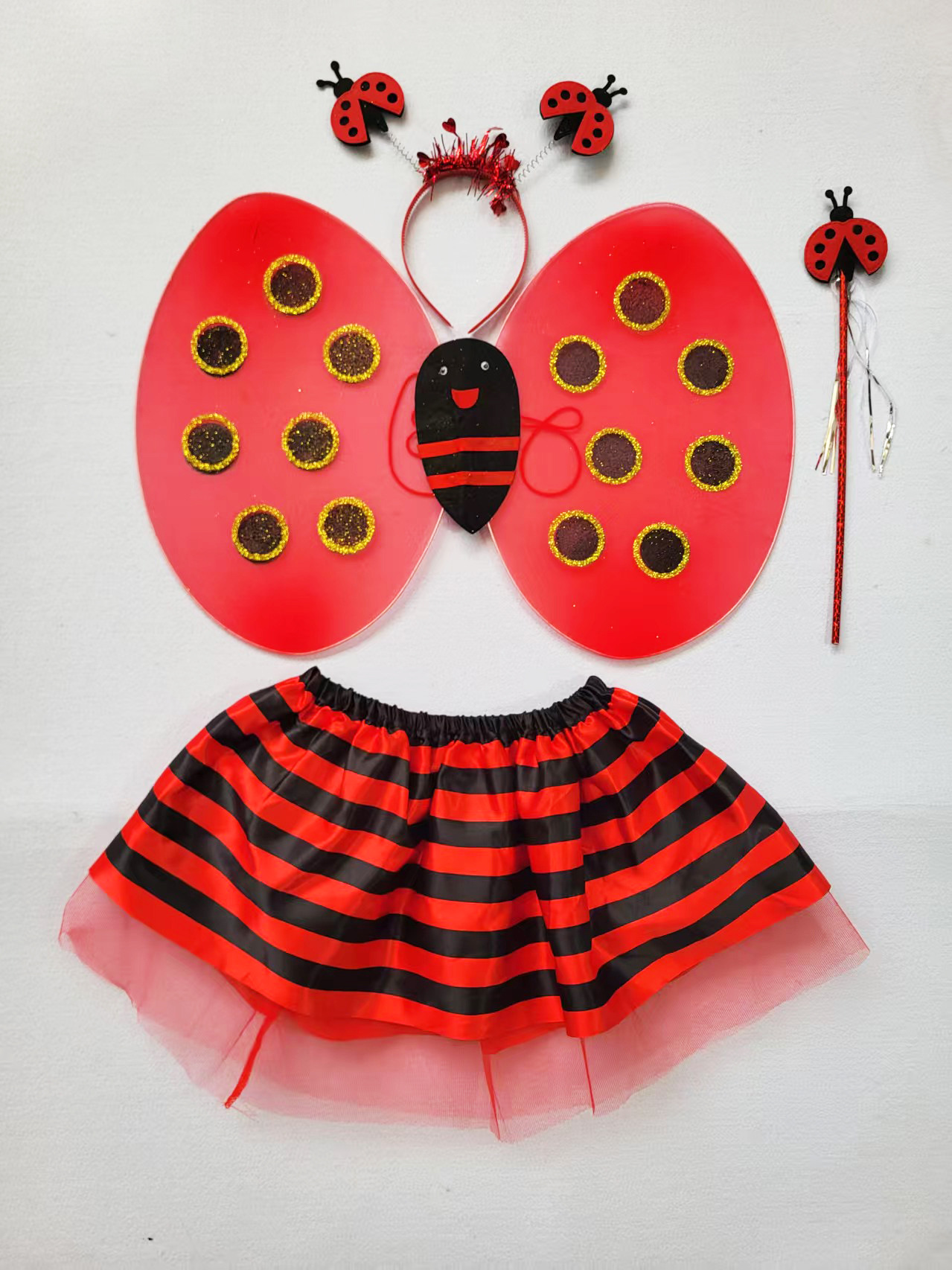 Cross-Border Hot Sale Imut Lebah Sayap Malaikat Ladybug Empat Potong Kostum Pertunjukan Merah Kuning Kostum Pertunjukan Panggung