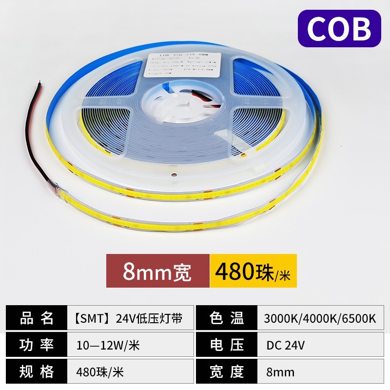 COB strip lampu led lembut 12 V24 V, strip lampu led voltase rendah 90 tampilan tinggi dekorasi rumah jari merekat sendiri suasana dekoratif lampu strip sorot