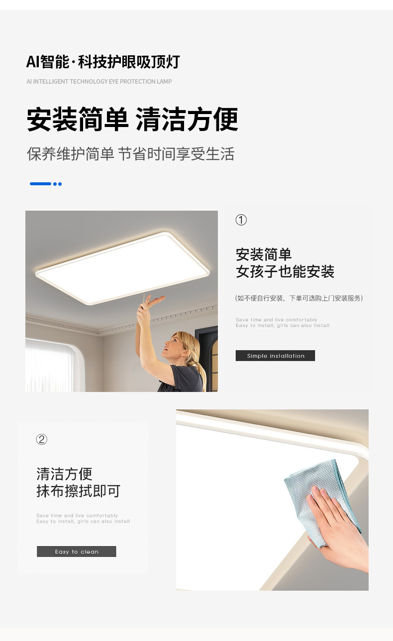 Lampu ruang tamu spektrum penuh 2025 lampu langit-langit pelindung mata baru lampu kamar tidur lampu pintar seluruh rumah modern sederhana super terang
