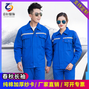 纯棉春秋长袖反光条劳保工作服套装耐磨汽修车间工装厂服工衣印绣