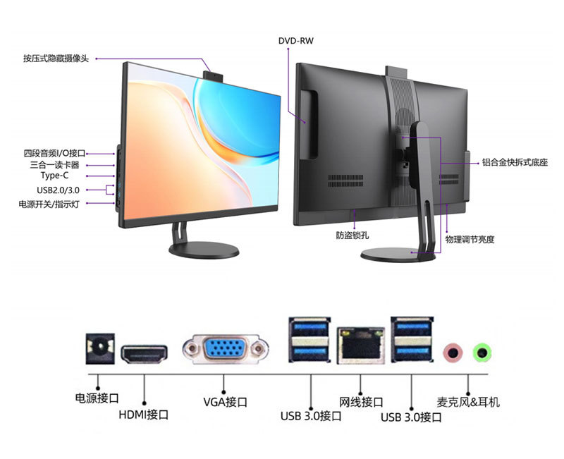 Komputer all-in-one dengan profil tinggi, desain 27 inci, permainan hiburan, komputer all-in-one, komputer, komputer digital kantor rumah