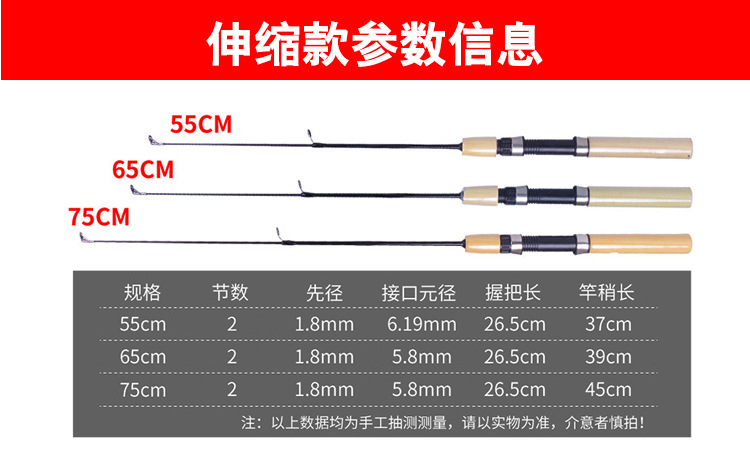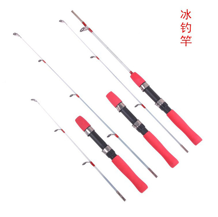 Tongkat pancing gantung luar ruangan, joran pancing es teleskopik portabel pendek plug-in musim dingin, peralatan memancing es