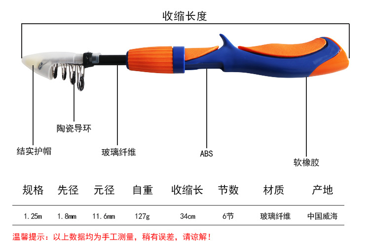 Weihai tongkat pancing anak-anak, joran memancing teleskopik Luya, kombinasi bagian pendek untuk anak-anak