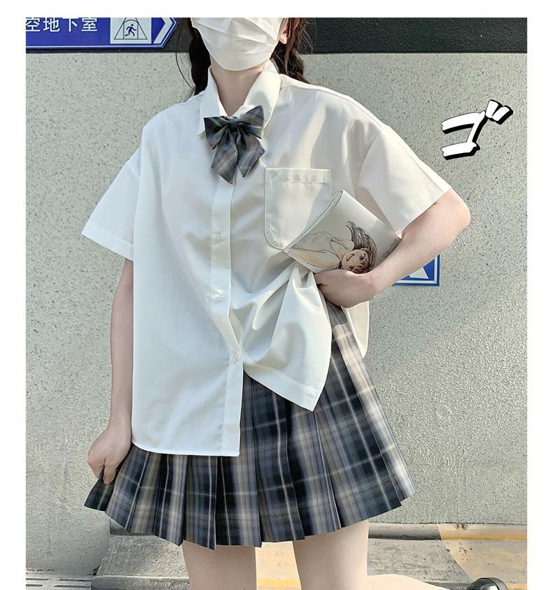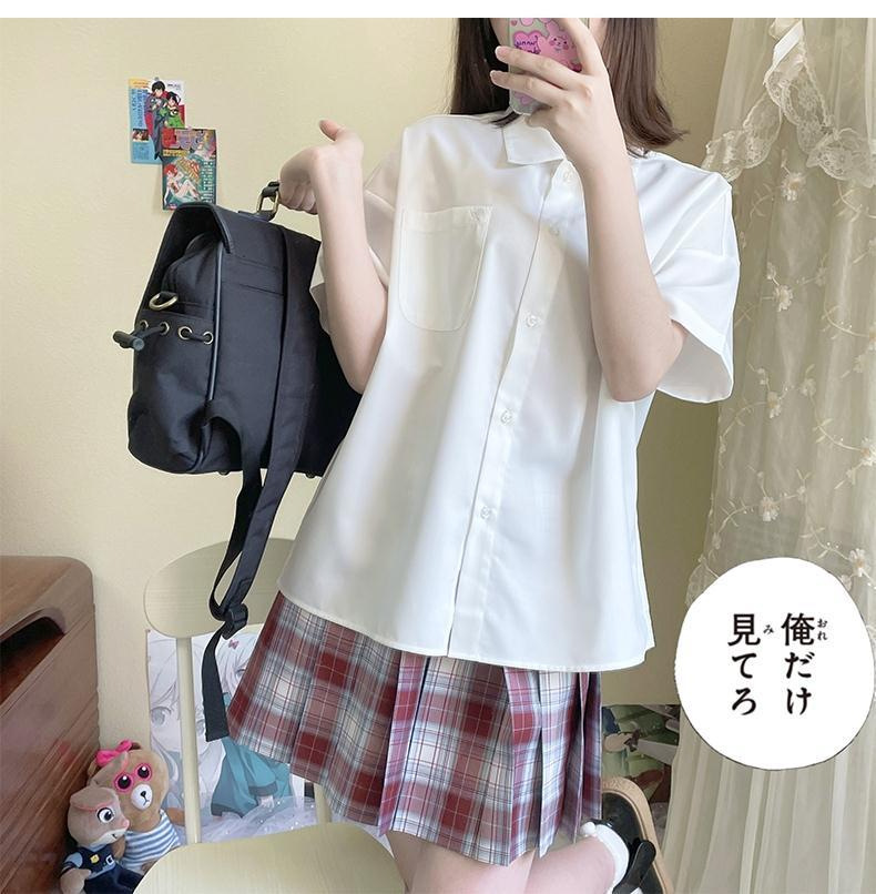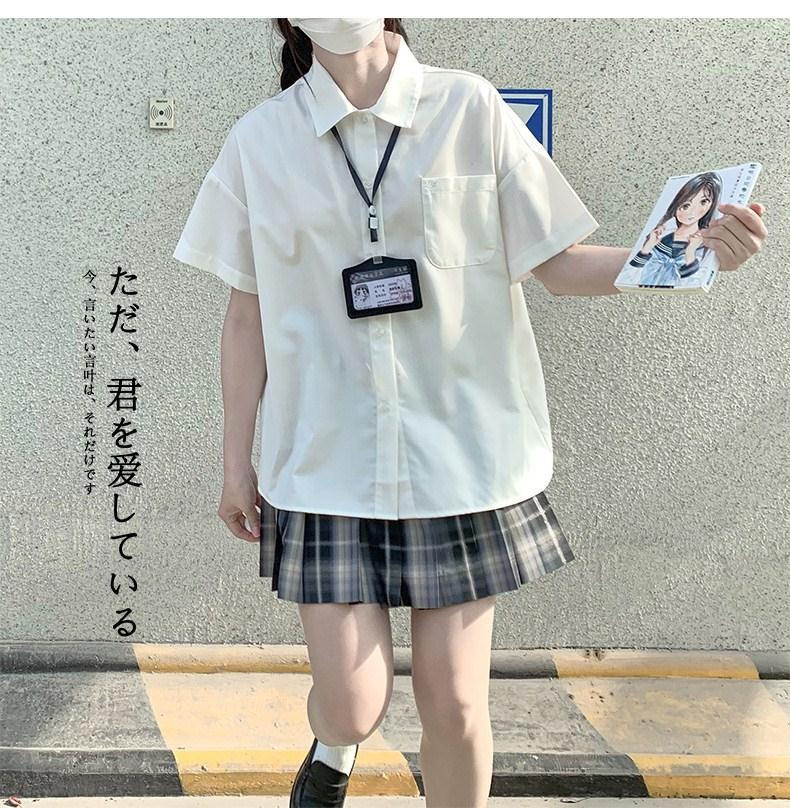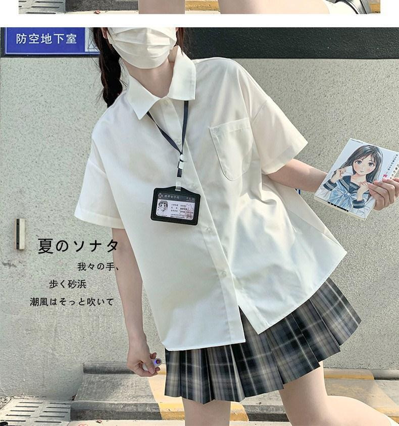 Kemeja putih wanita lengan pendek gaya kuliah musim panas atasan seragam siswa JK kemeja bottoming pabrik satu potong pengiriman