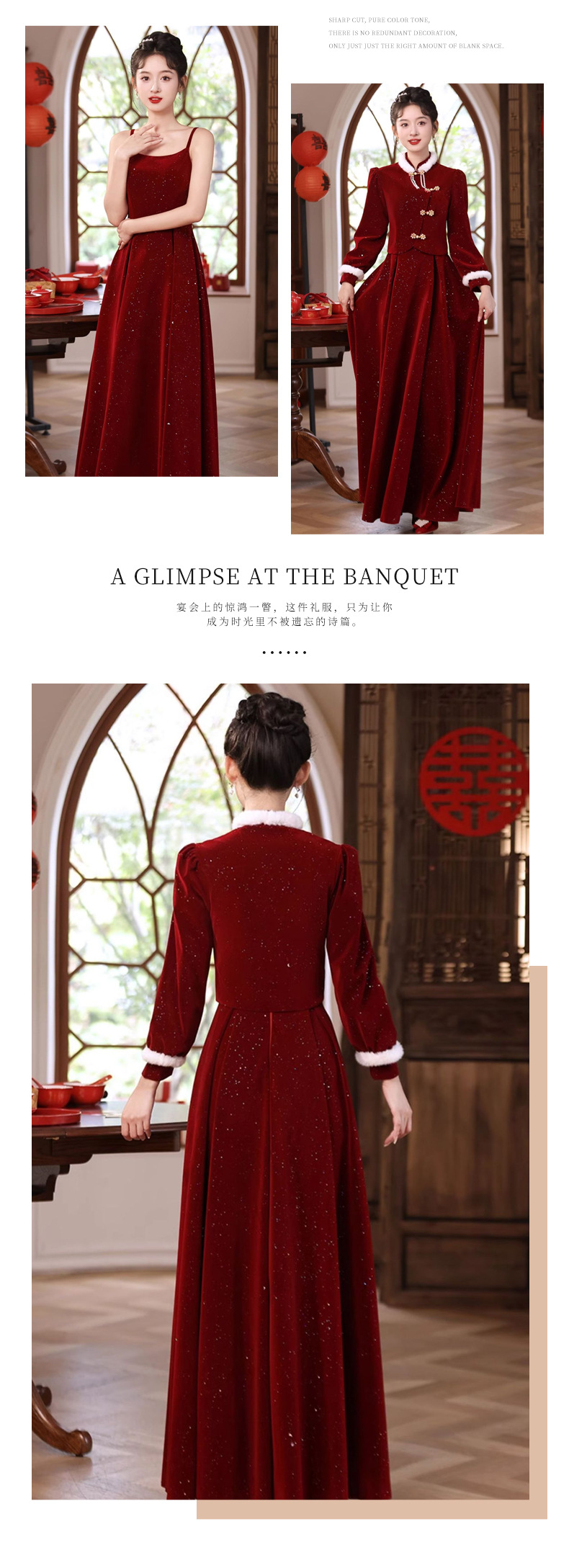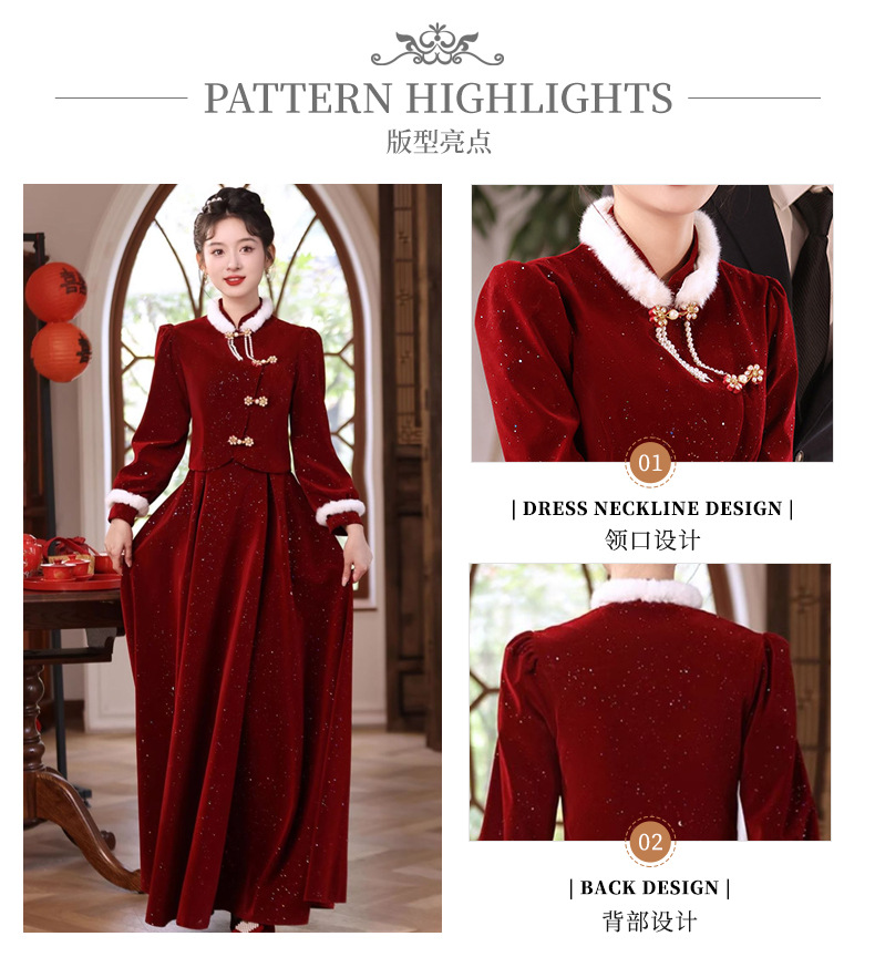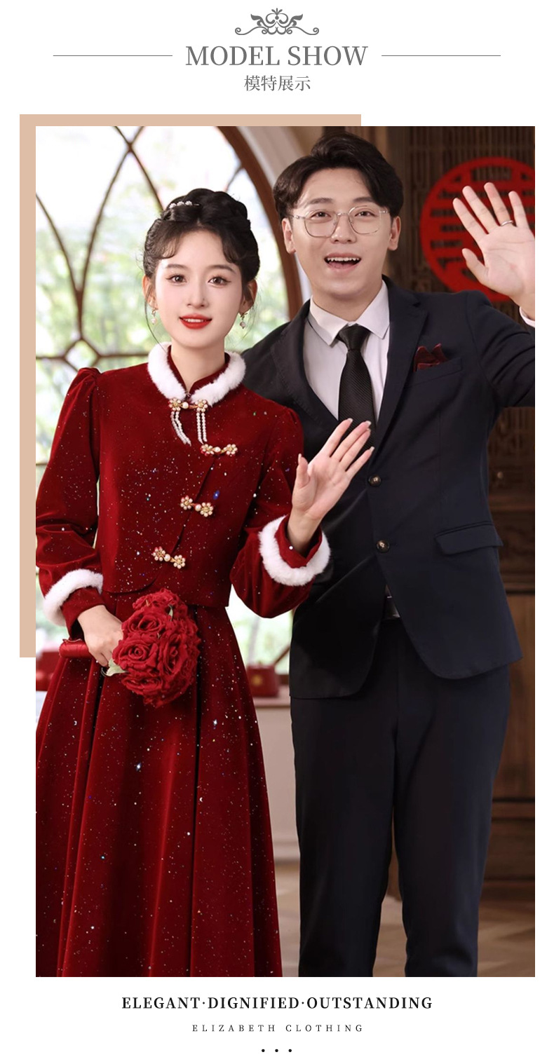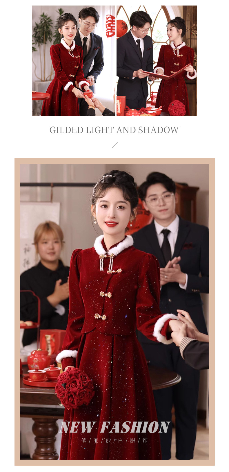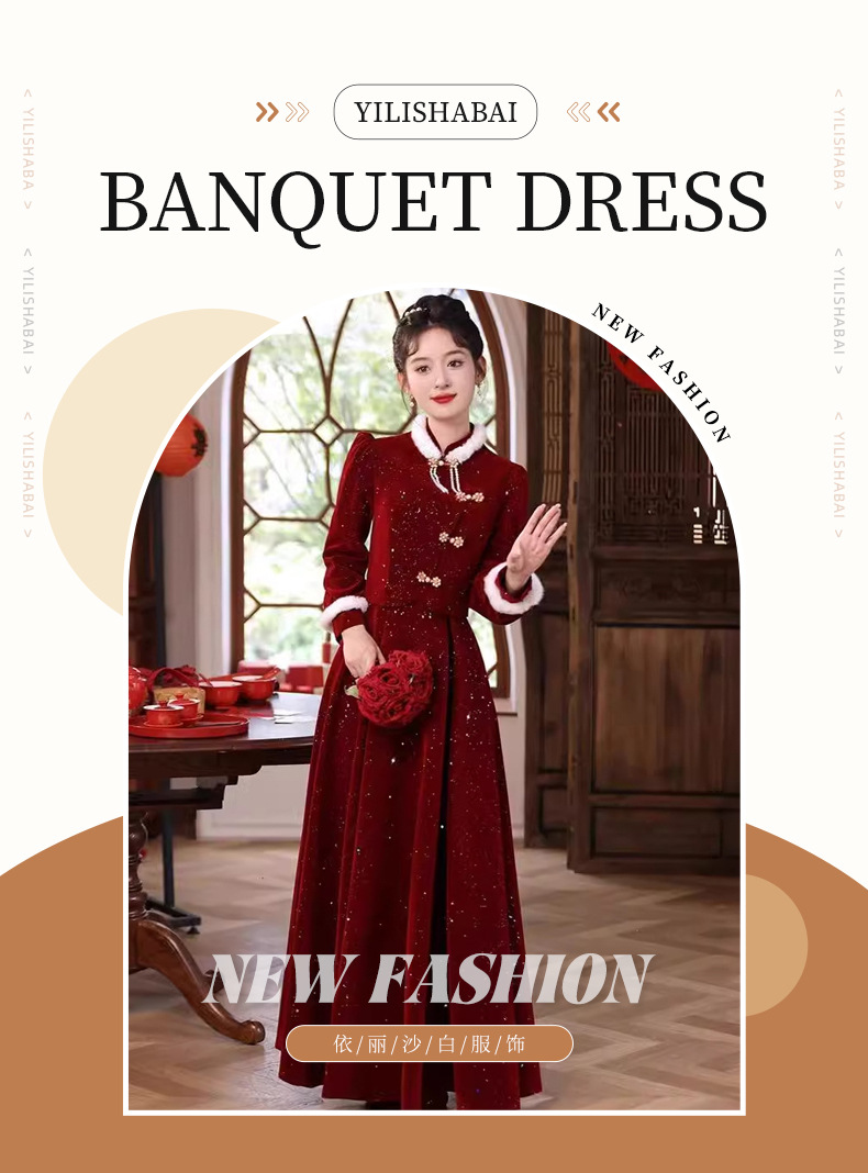 Gaun pengantin gaya Cina baru model 2026, gaun tunangan merah pengantin wanita versi terbaru, gaun qipao untuk acara kembali pulang.