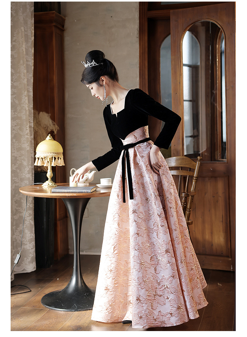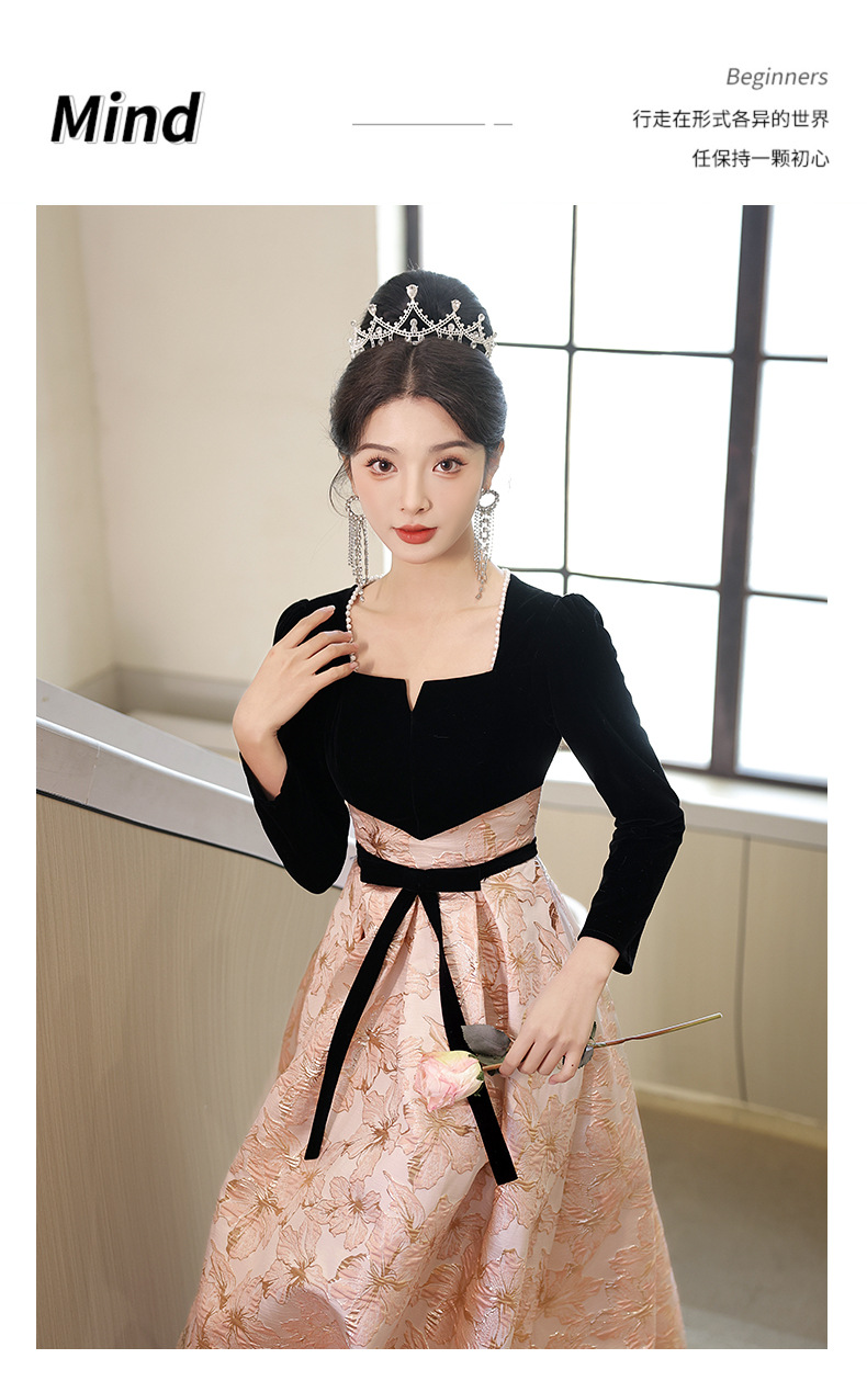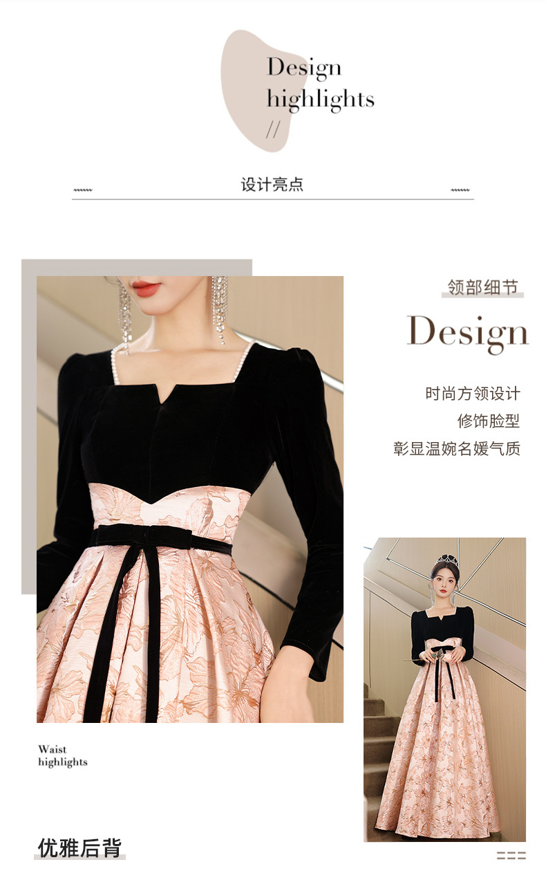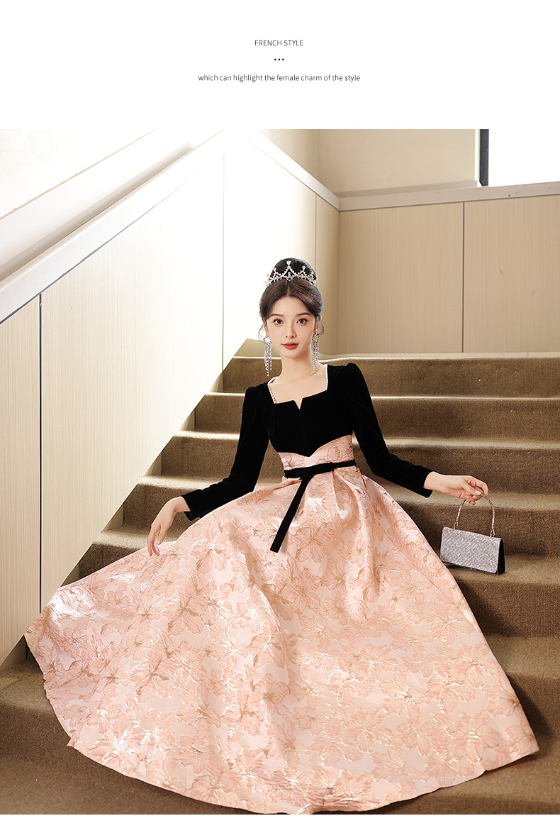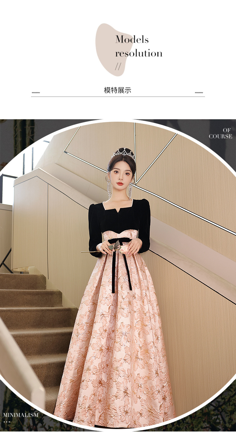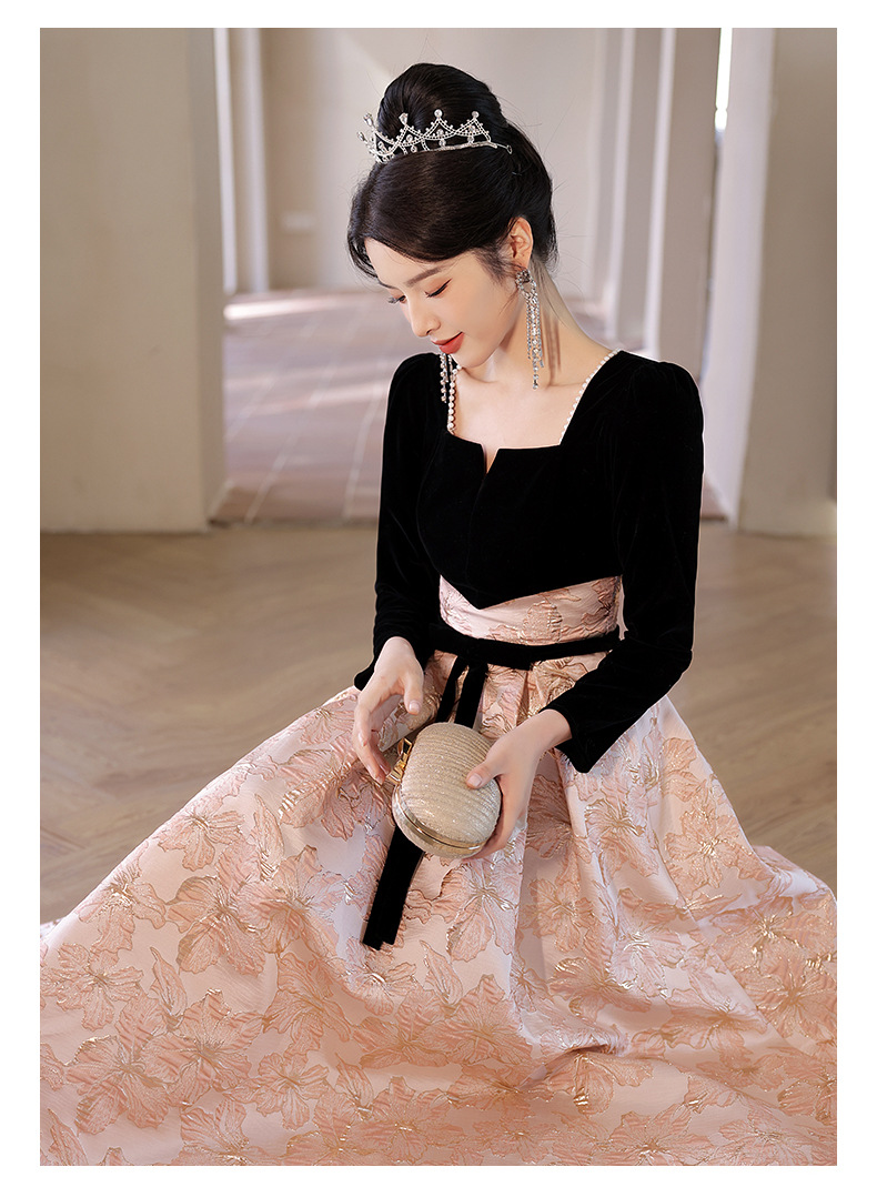 Gaun malam untuk wanita, gaya baru 2026 untuk pesta, kemewahan ringan, unik, suasana Prancis, rapat tahunan, gaun malam lengan panjang