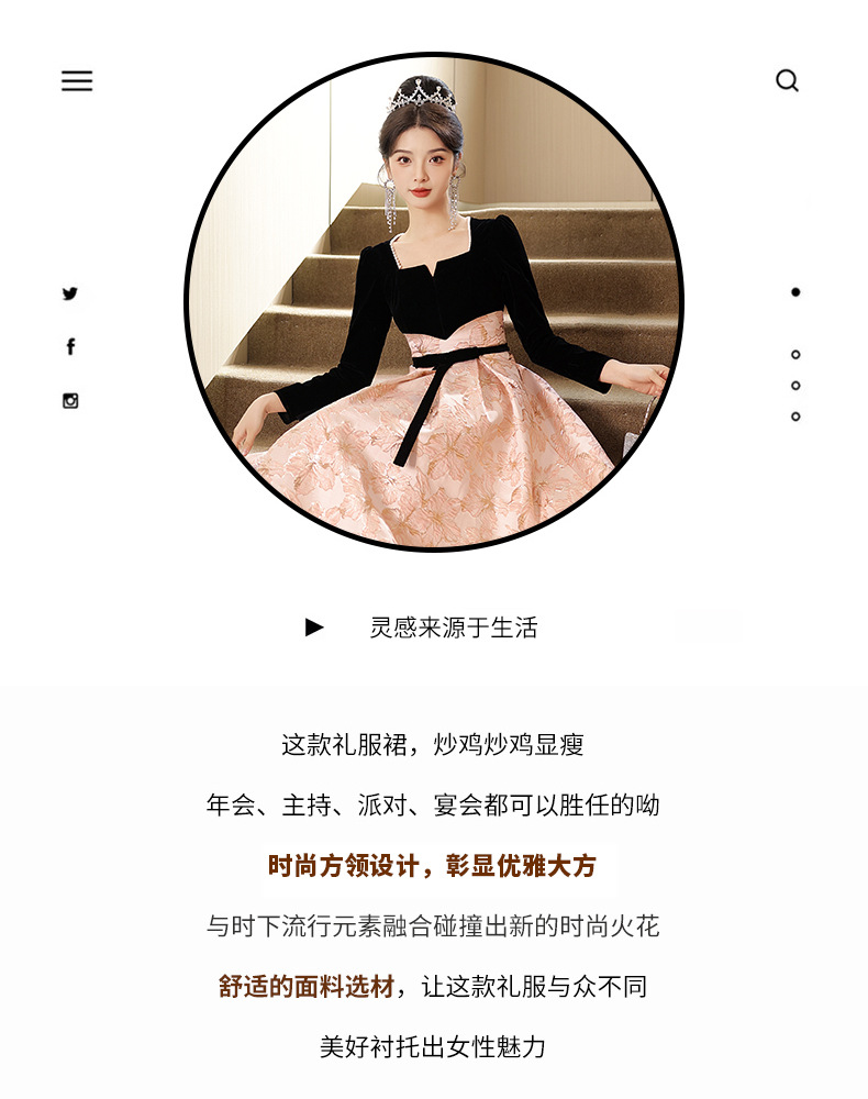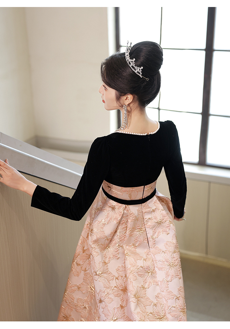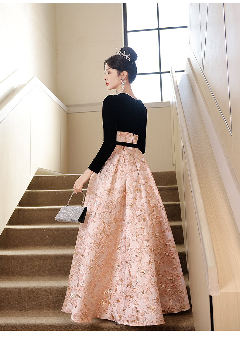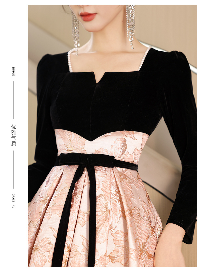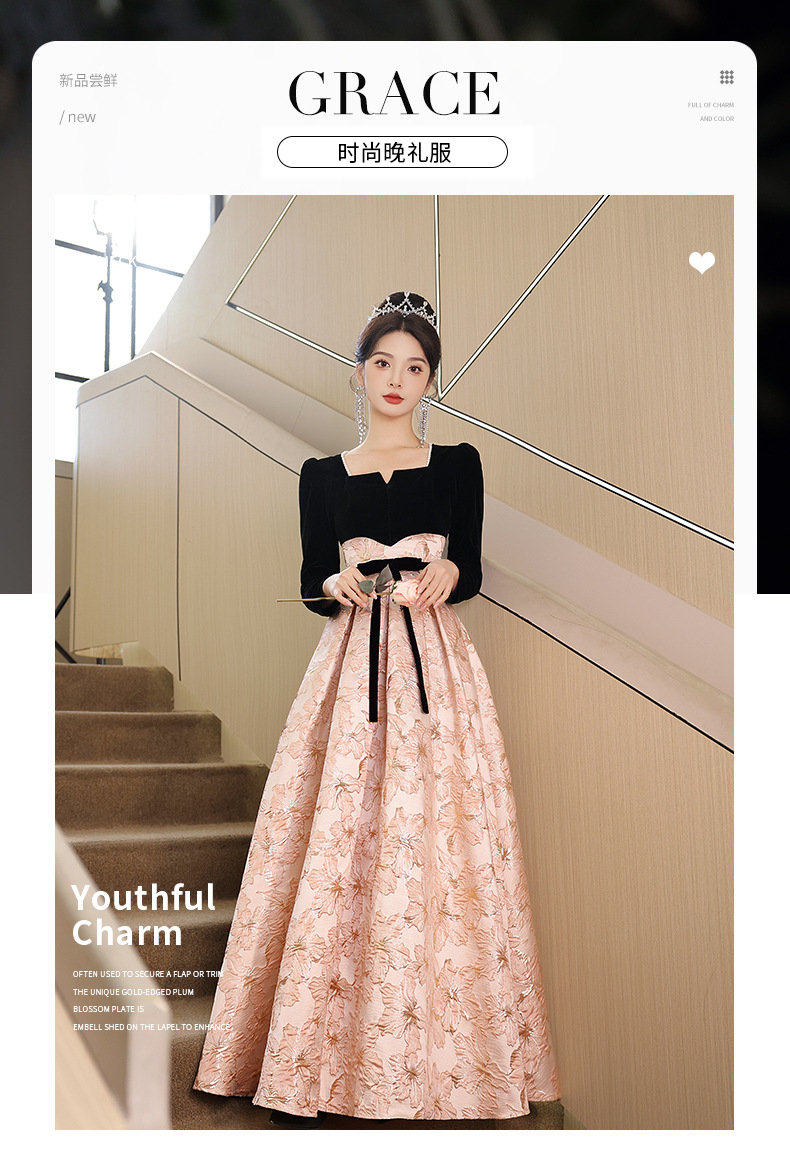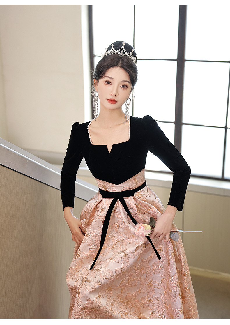 Gaun malam untuk wanita, gaya baru 2026 untuk pesta, kemewahan ringan, unik, suasana Prancis, rapat tahunan, gaun malam lengan panjang