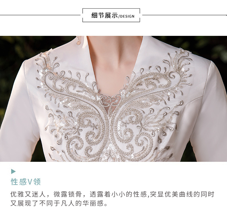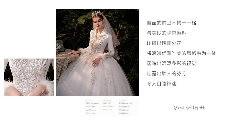 Gaun pengantin impor Eropa dan Amerika 2026 model baru, lengan panjang, kerah V, panjang menjuntai, putih, untuk fotografi perjalanan, bergaya bintang, impian, sederhana.