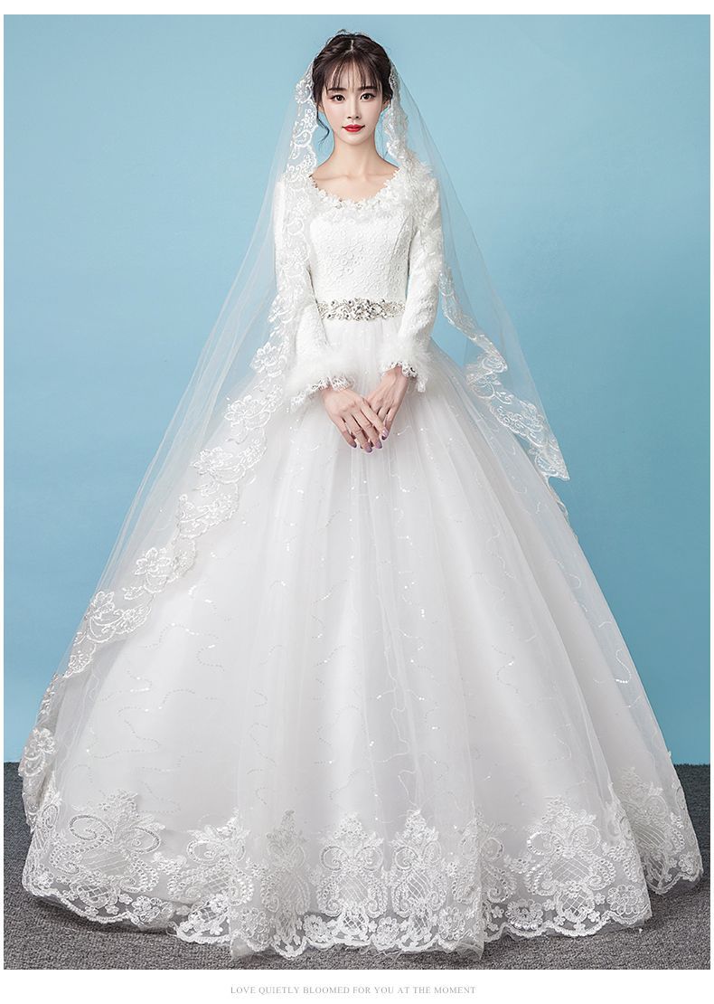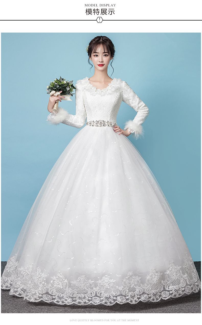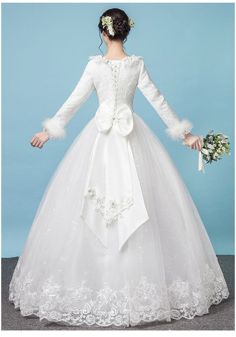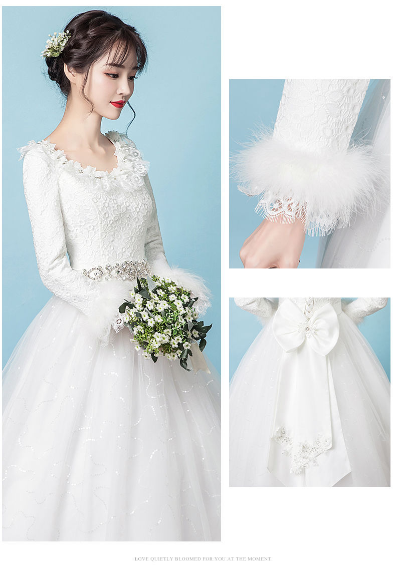 Gaun pernikahan cahaya utama Musim Panas 2024 baru pernikahan pengantin hangat putih lengan panjang tebal musim dingin gaya Mori lantai panjang Super peri