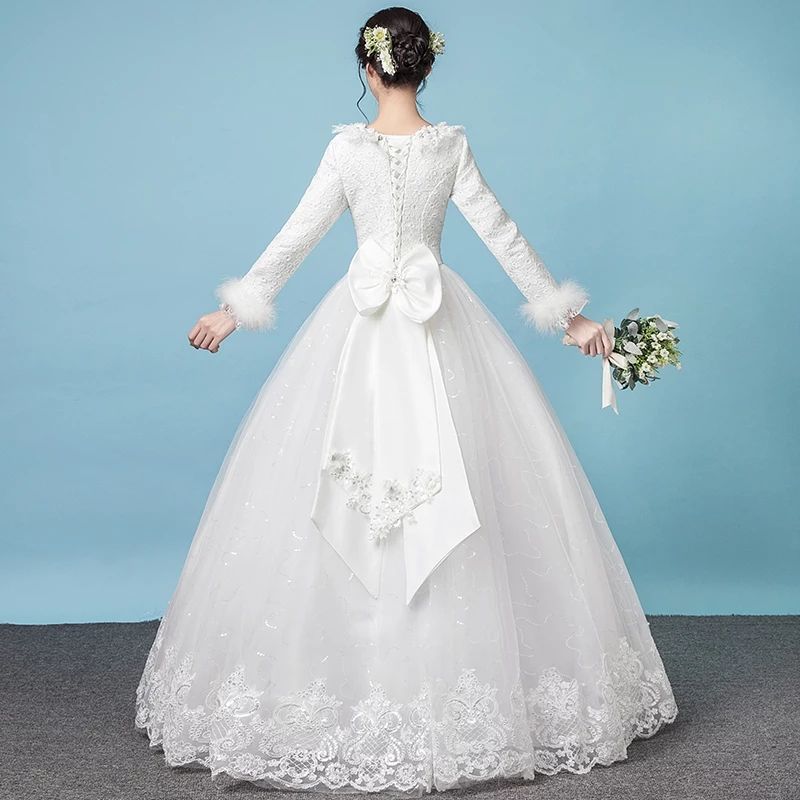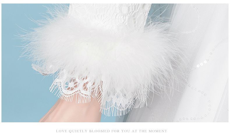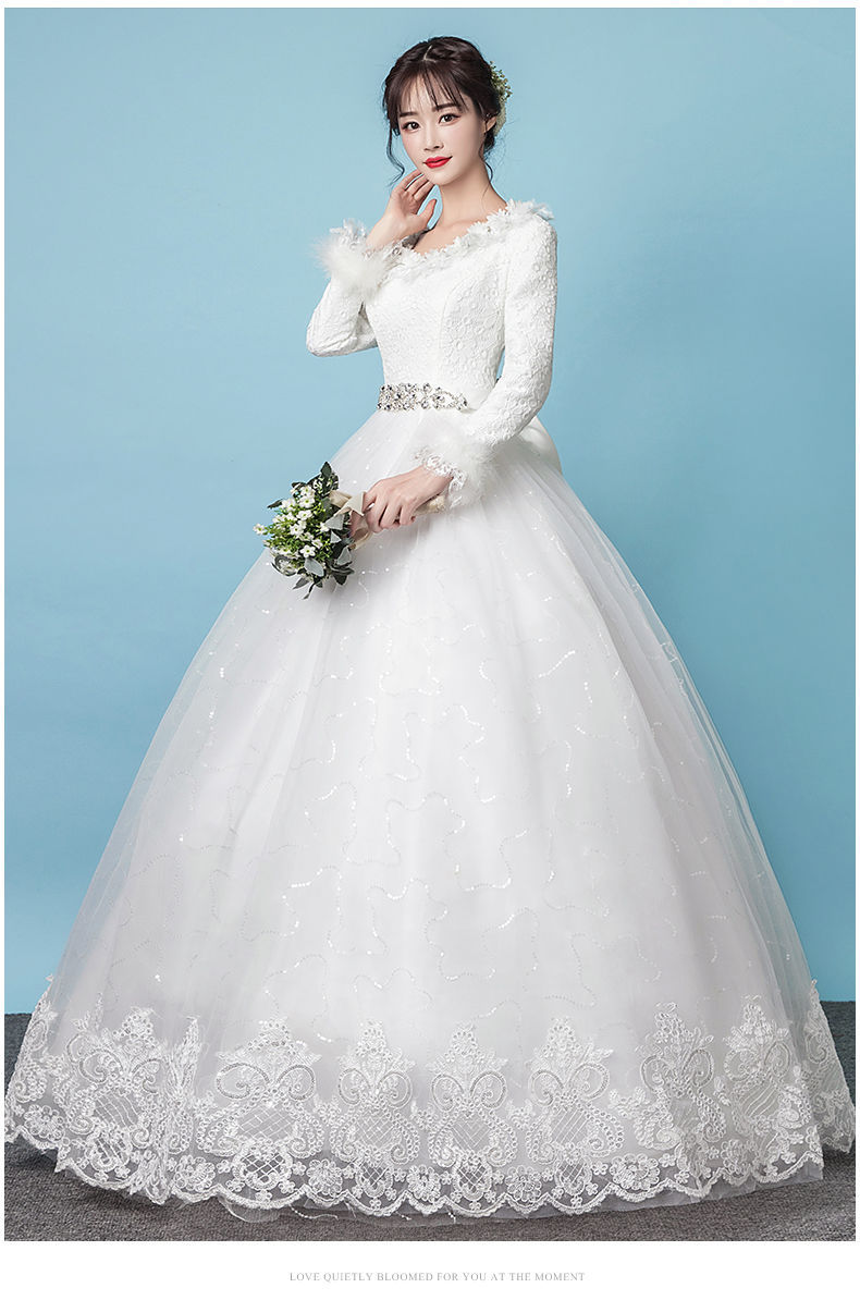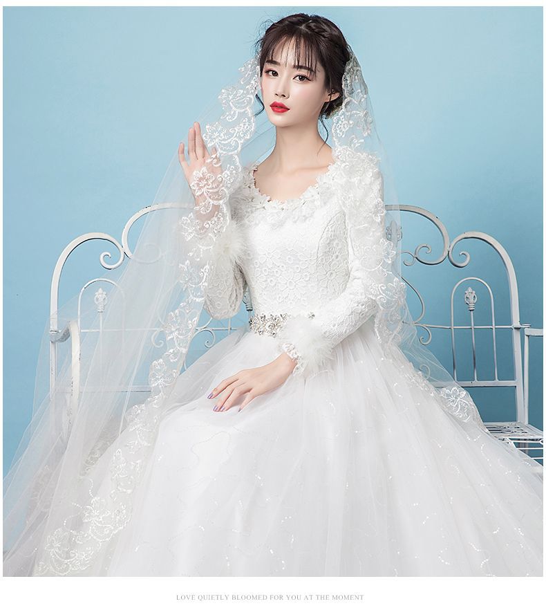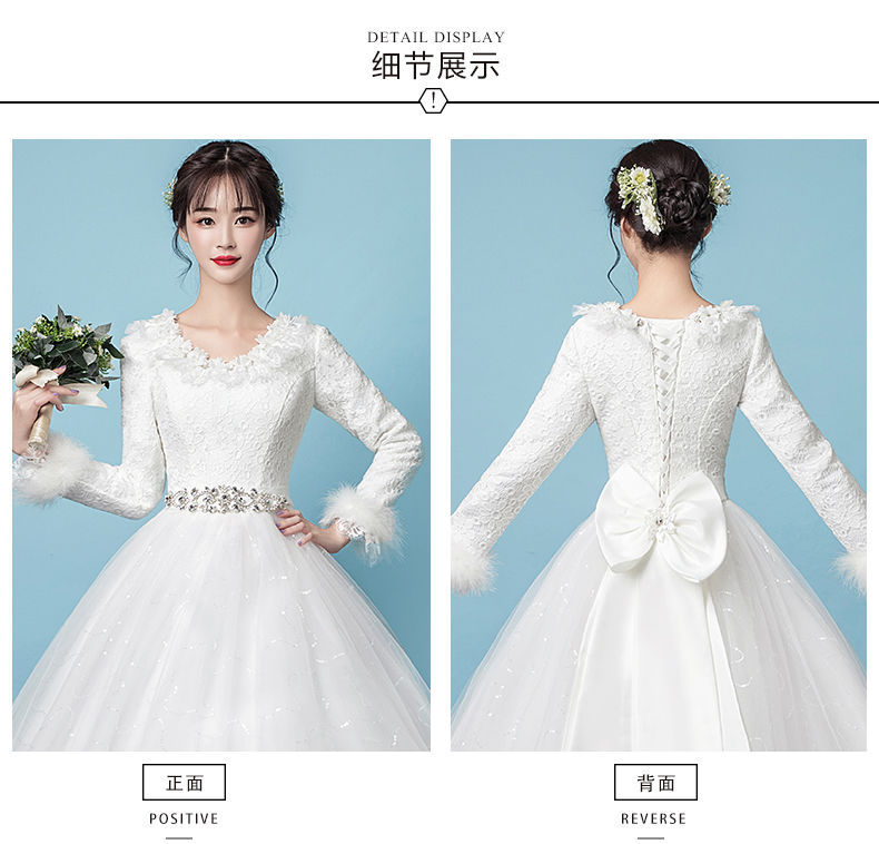 Gaun pernikahan cahaya utama Musim Panas 2024 baru pernikahan pengantin hangat putih lengan panjang tebal musim dingin gaya Mori lantai panjang Super peri
